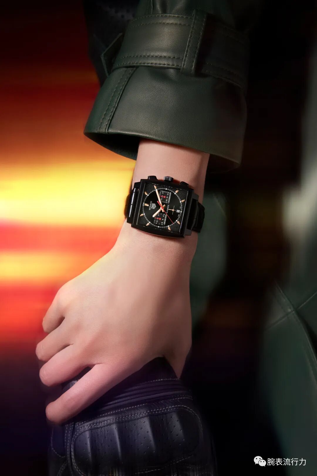 敢於標新立異、勇於打破常規是現代女性具備的特質,正如1969年問世的泰格豪雅摩納哥系列,以其大膽創新、特立獨行的精神,不斷挑戰製表業的方方面面。泰格豪雅摩納哥系列(Monaco)特別版計時碼錶採用2級鈦金屬製成,並覆有黑色DLC塗層,經過噴砂處理的錶殼最終呈現粒狀紋理效果,令腕錶整體呈現深沉濃郁的色彩。錶盤以黑色為基調,延續其別具一格的“外方內圓”的幾何美學設計,稜角分明的外表囊括圓潤弧線,凸顯別緻酷颯外觀的同時,彰顯女性由內而外迸發出的強韌力量。腕錶搭配玫瑰金時標、時針和分針,指針並塗覆白色Super-LumiNova®熒光物料與深色腕錶形成鮮明對比,即使在昏暗的環境,腕錶都具有出眾的易讀性,為摩登潮酷女孩在腕間注入追求創新、敢於突破的非凡力量。