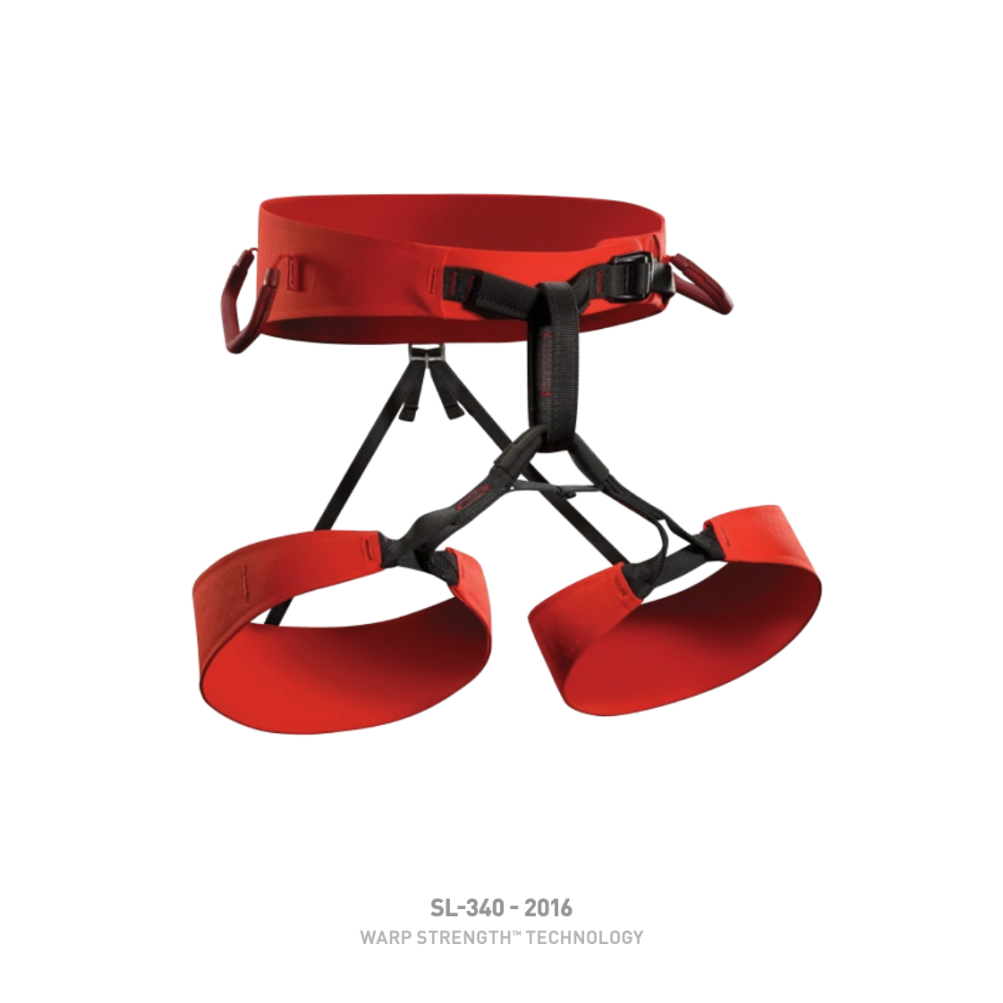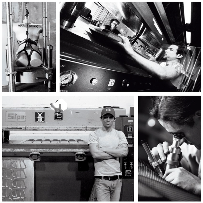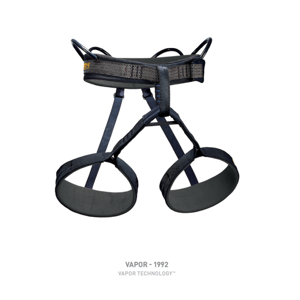 92年始祖鳥的第一代熱壓成型的攀登安全帶VAPOR的誕生就來自於此,設計師Mike Blenkarn製作了一個簡單的熱成型軛架,用來扛著他的自行車上North Shore的山,隨後用成形輪廓,創造一個三維登山揹帶的想法就誕生了,不過讓這樣的規劃真的落地,在研發初期花了不少功夫,在多次嘗試下,它只有在特定的模具和工藝下才能成形。