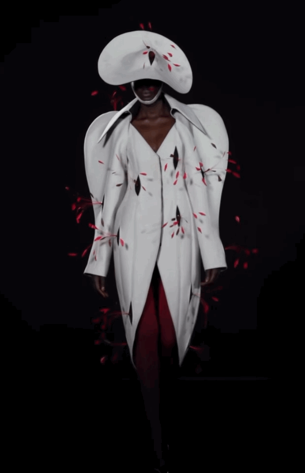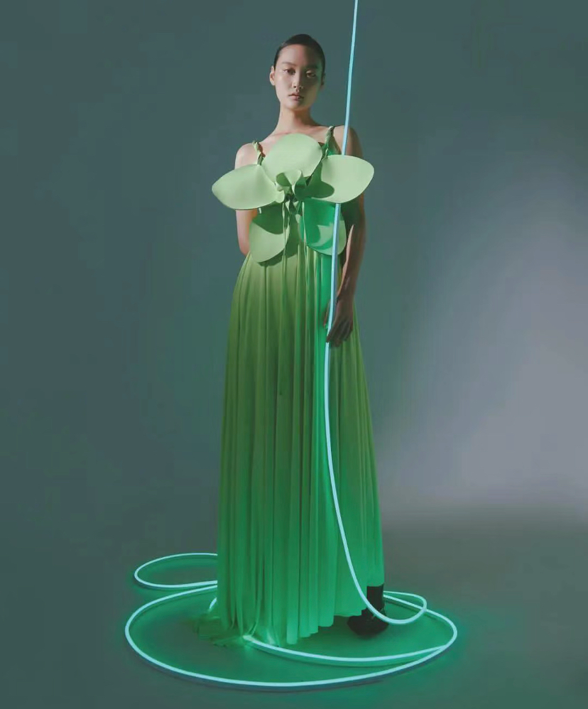 19年的春夏設計,他曾推出「花木蘭」系列,線條硬朗但輪廓優雅的蘭花造型很有辨識度,炫技的同時最大限度地展現了“以柔克剛”的精神。