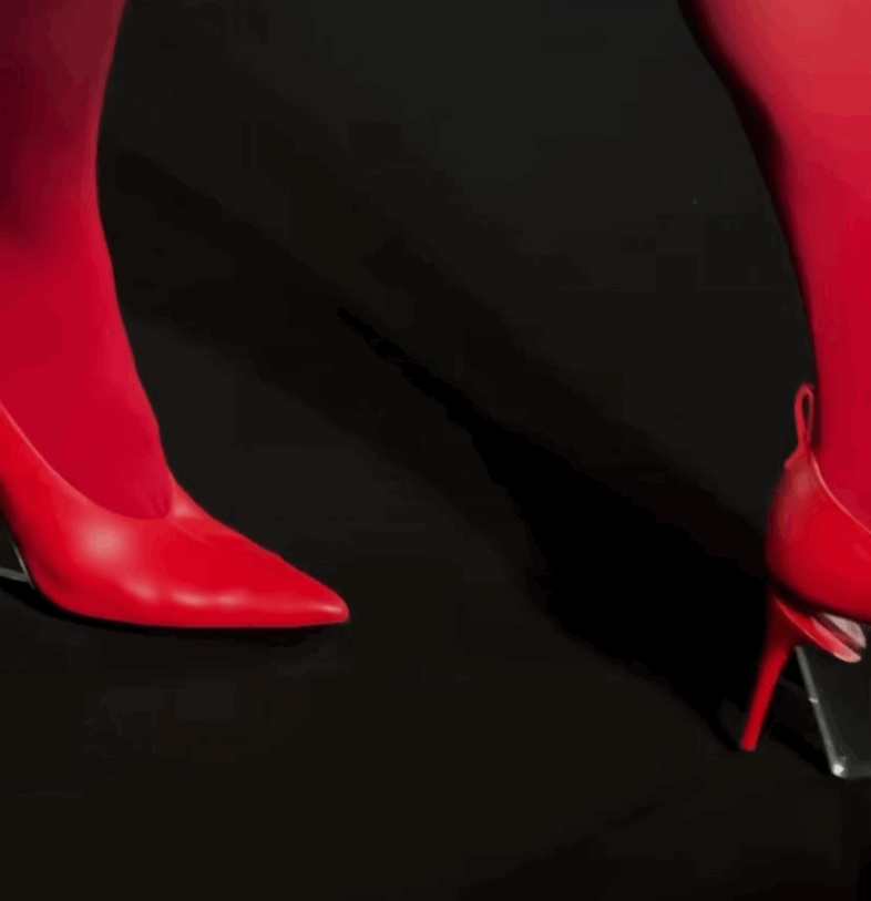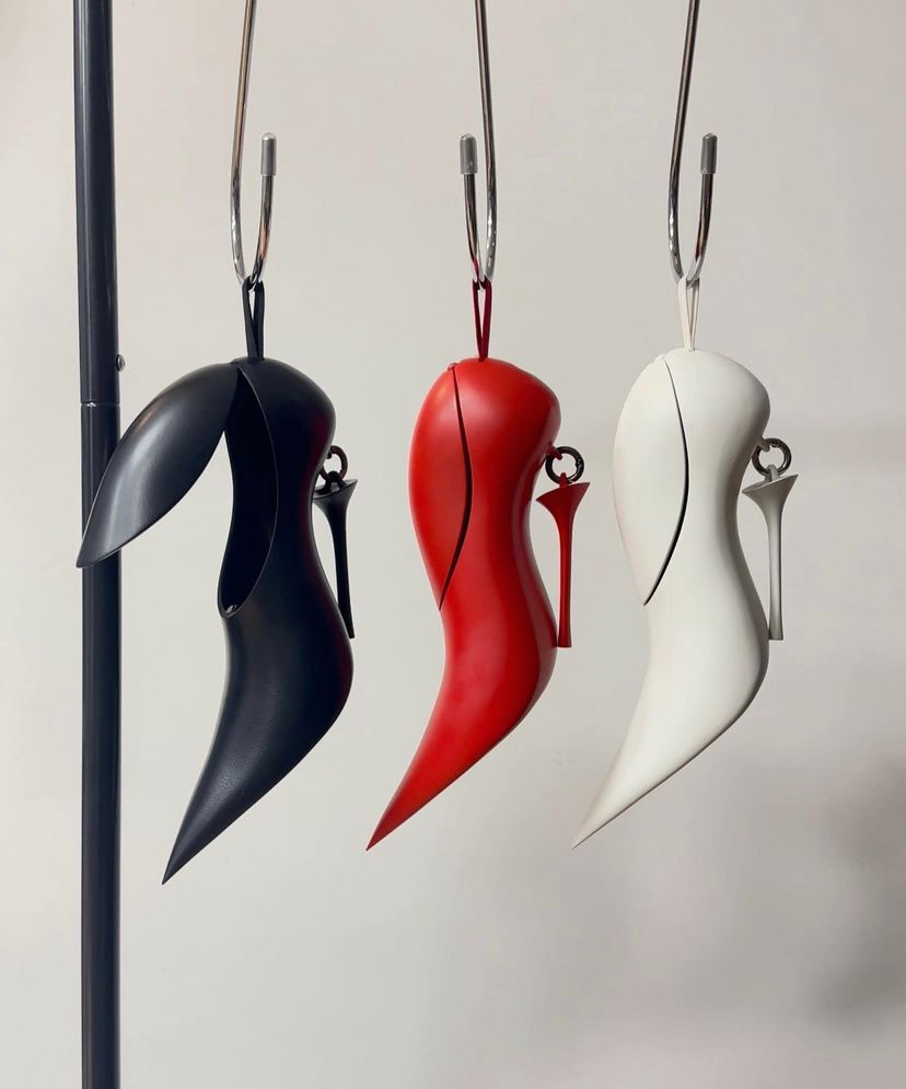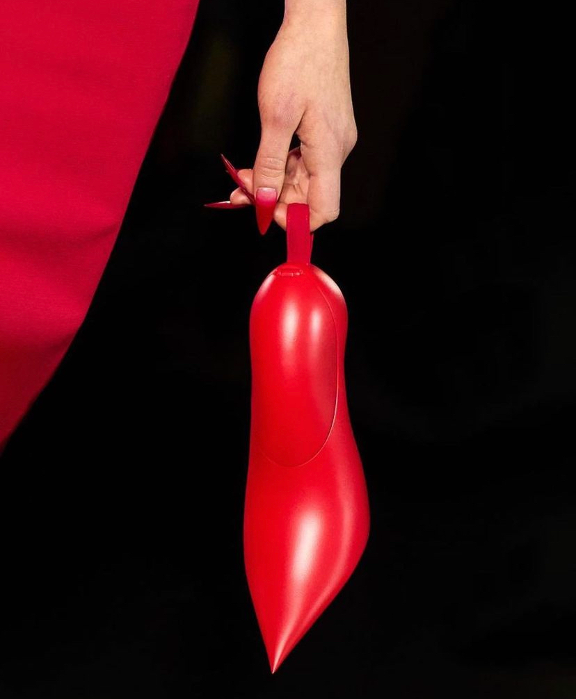 高跟鞋不僅會被定格在斷裂時刻,也會被模特當成包包拎在手裡。