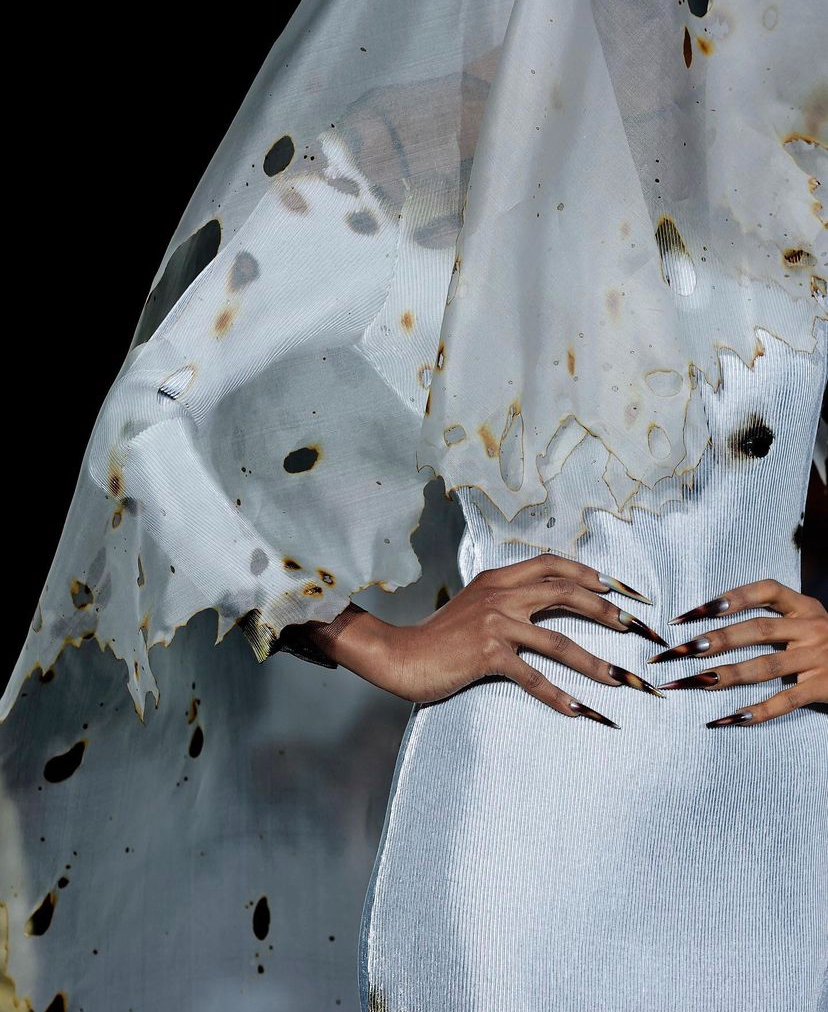 (看似隨意的燒灼痕跡其實都是精心佈置,模特指甲的顏色搭配也有心機▽)