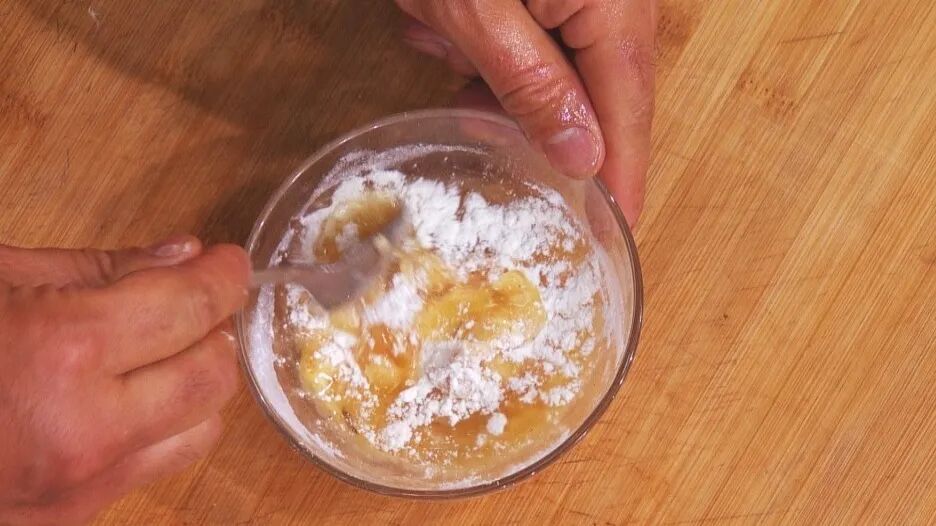 2勺麵粉加入適量椒鹽、花生油,調成酸奶狀的糊。