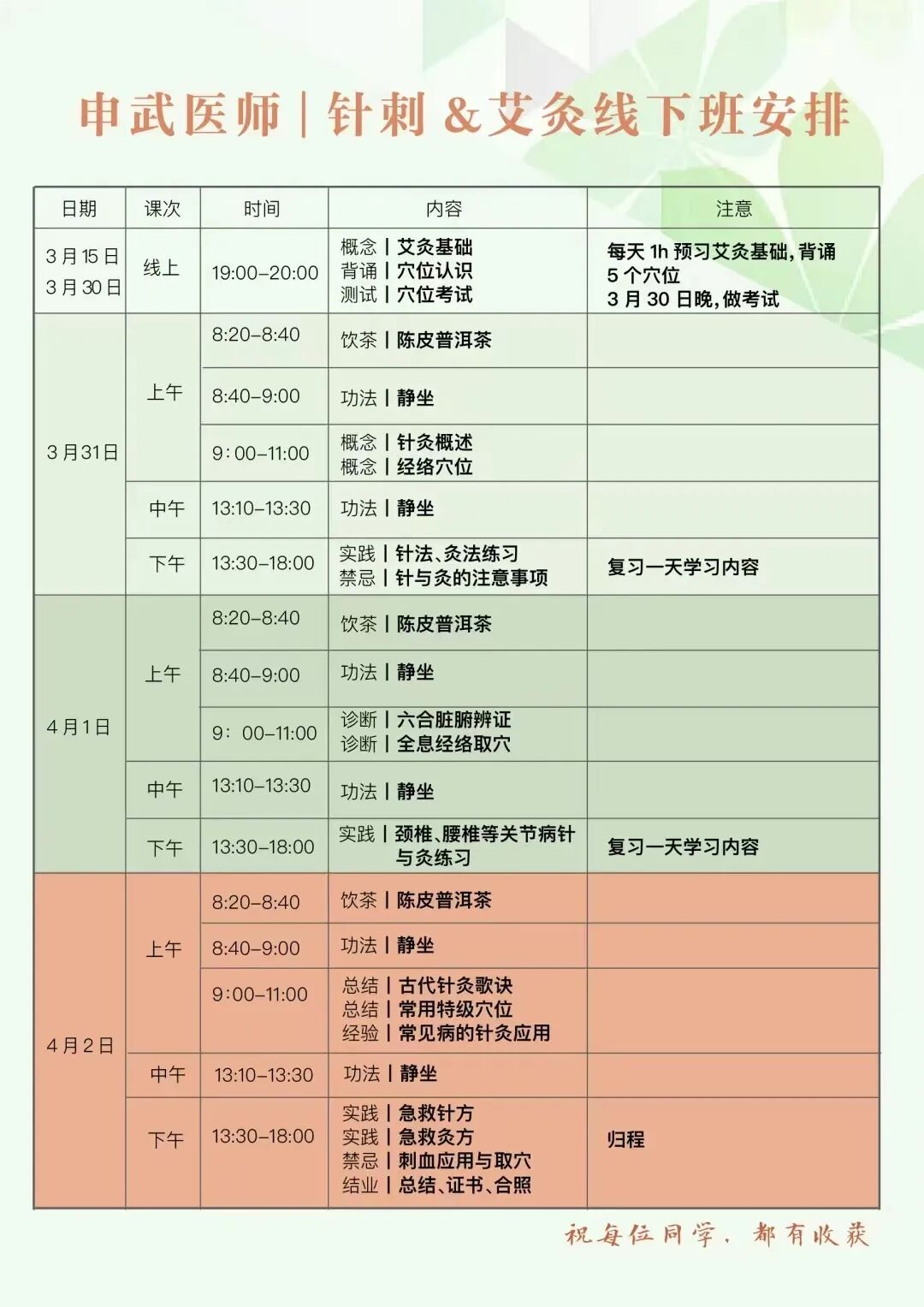 本次線下課會在艾灸的基礎上,增加針刺教學和呼吸靜坐。
