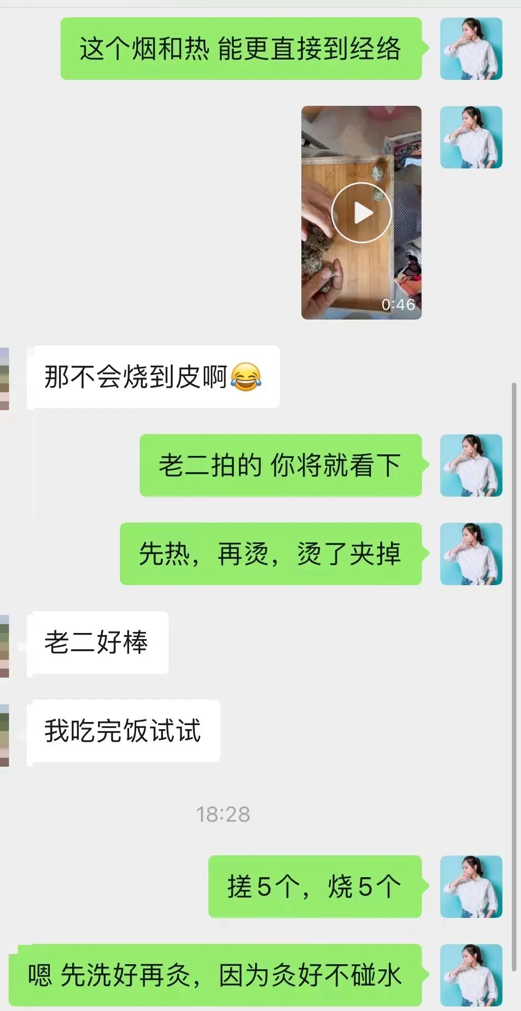 為了不浪費我已經搓好的艾壯,我給孩子媽媽灸了足三里,灸好回家發微信給我說:腳底板真的熱熱的,太神奇了。