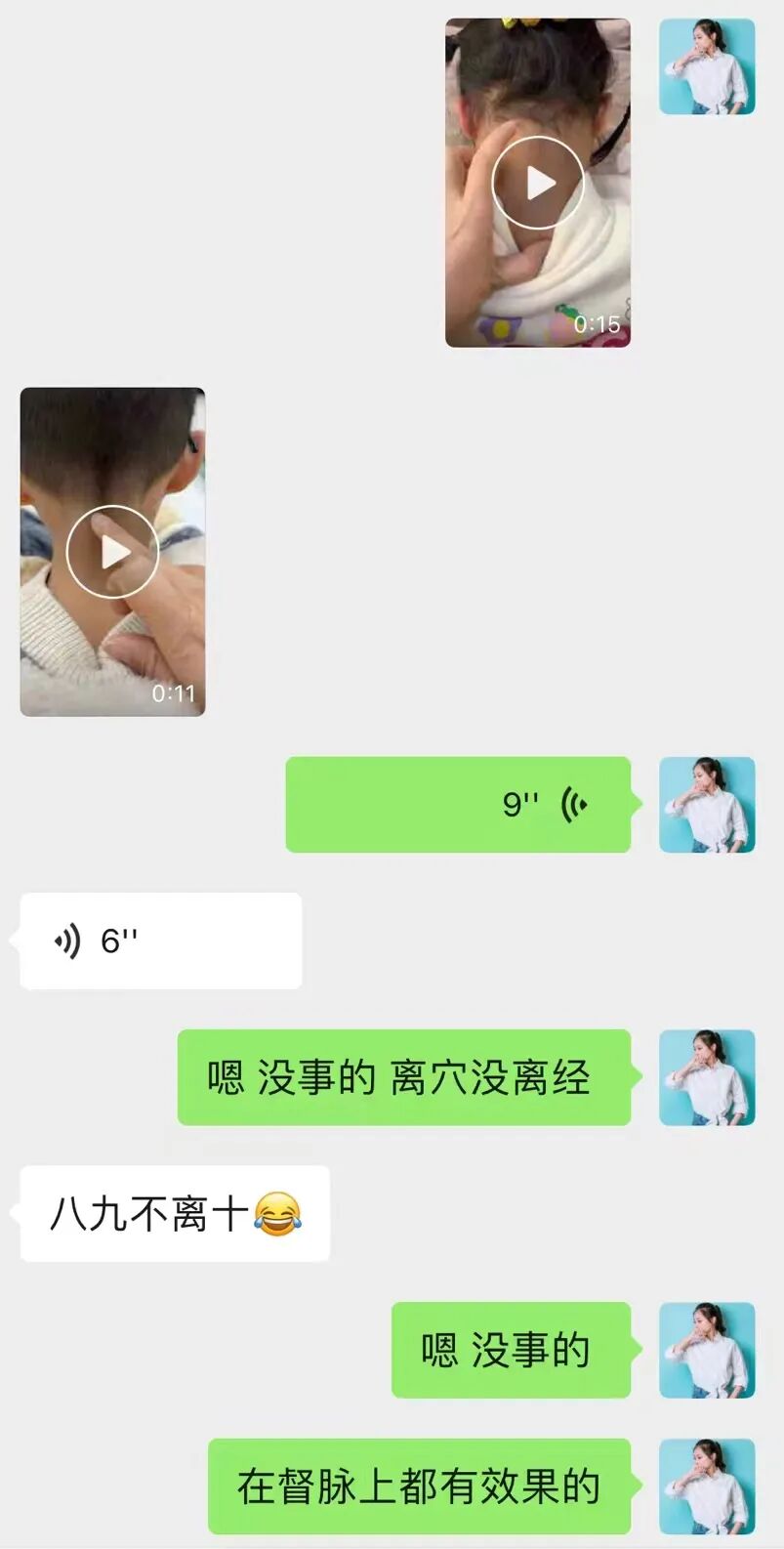 第二天,孩子媽媽說孩子發燒了,讓我給灸下,這次孩子很配合。我記得有給灸了大椎的,其他我記不起來了,發消息告訴我說她兒子當天晚上睡著有出汗,就好了,還說感覺嘴巴也不那麼臭了。