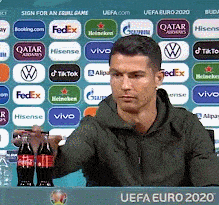 去年歐洲盃期間,C羅把桌前的可口可樂挪出鏡頭,給可口可樂帶來了一波前所未有的熱度,全世界老百姓開始玩「可樂梗」。