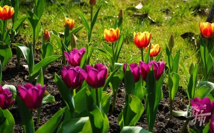 同時,在整體植物配置中採用多年生和一年生草本花卉與鬱金香相搭配形式,種植了羽扇豆、虞美人、角堇、鳶尾等花卉,其中,鬱金香種植區域包含望山坪、逍遙坡、手拉手雕像區塊、悠然亭、放懷亭、主河道兩側及月季園等。在主河道兩側水系邊則栽植5個新品種、近3萬球洋水仙。