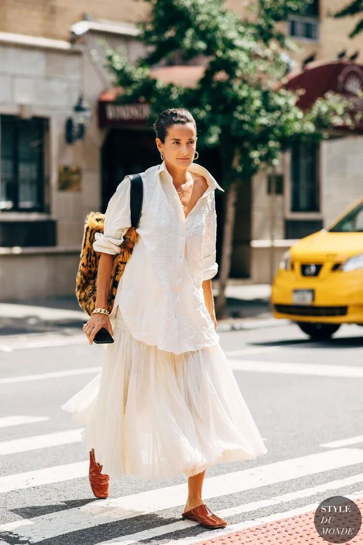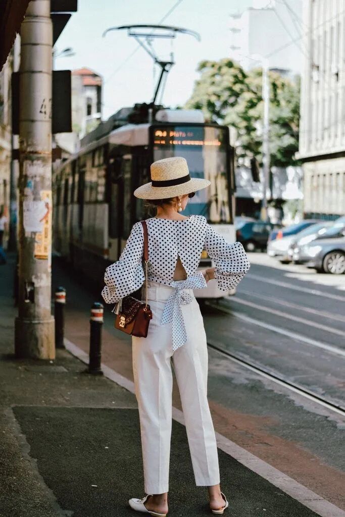藍天白雲 初春的晴天,天空總是藍的透徹,有了白雲的點綴就更為清朗。 防曬草帽+波點元素 而且我們有去對比過草帽跟各種單品的搭配。最終我們的結論是:跟防曬草帽最搭配的,是波點元素的單品。 廓形襯衫 除了草帽和波點的搭配,一件寬鬆的廓形上衣,既能解決防曬問題,又因為寬鬆的版型不會悶熱。 她的夏天搭配總是看起來又涼爽又舒服。