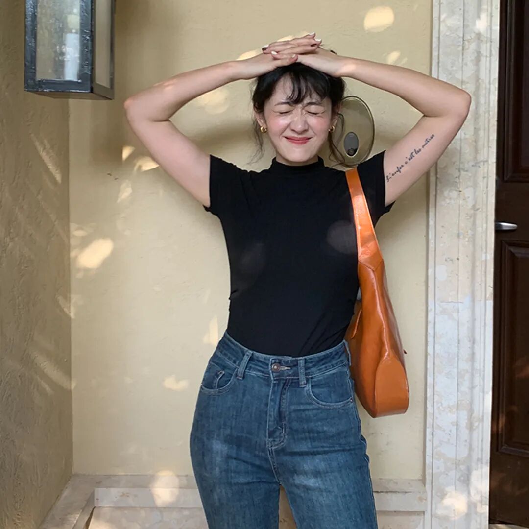 半高領短袖內搭!強推!別問我是熱還是冷,這種時髦單品,我穿它還在乎溫度嗎?