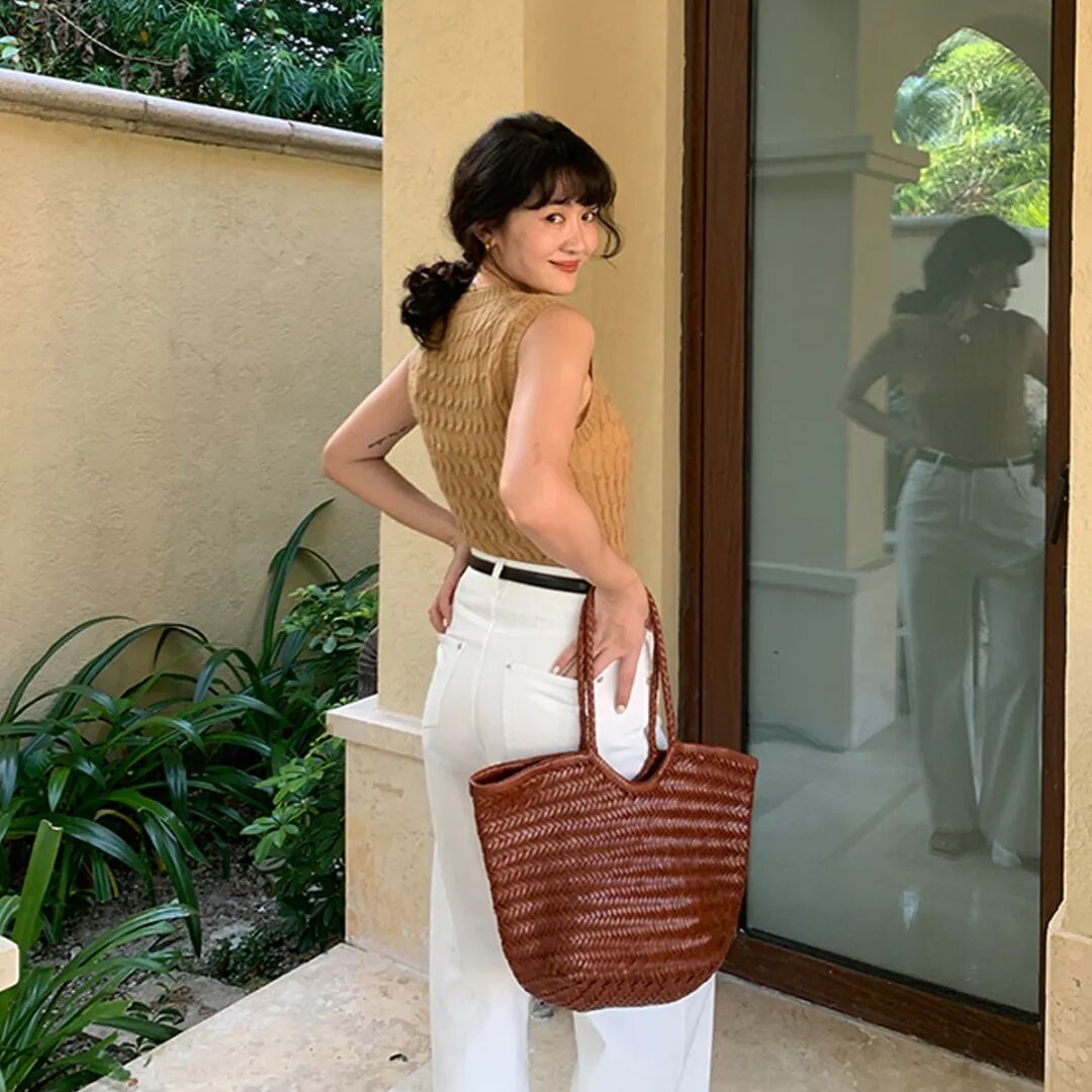 針織打底背心採用了精緻的羅紋,不厚,是有點微微透的程度,夏天單穿也行,H版型能幫助你遮住副乳。