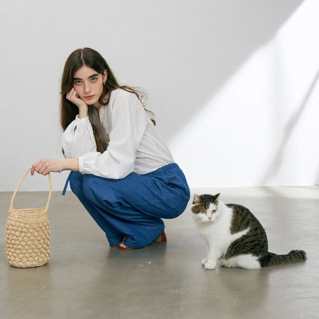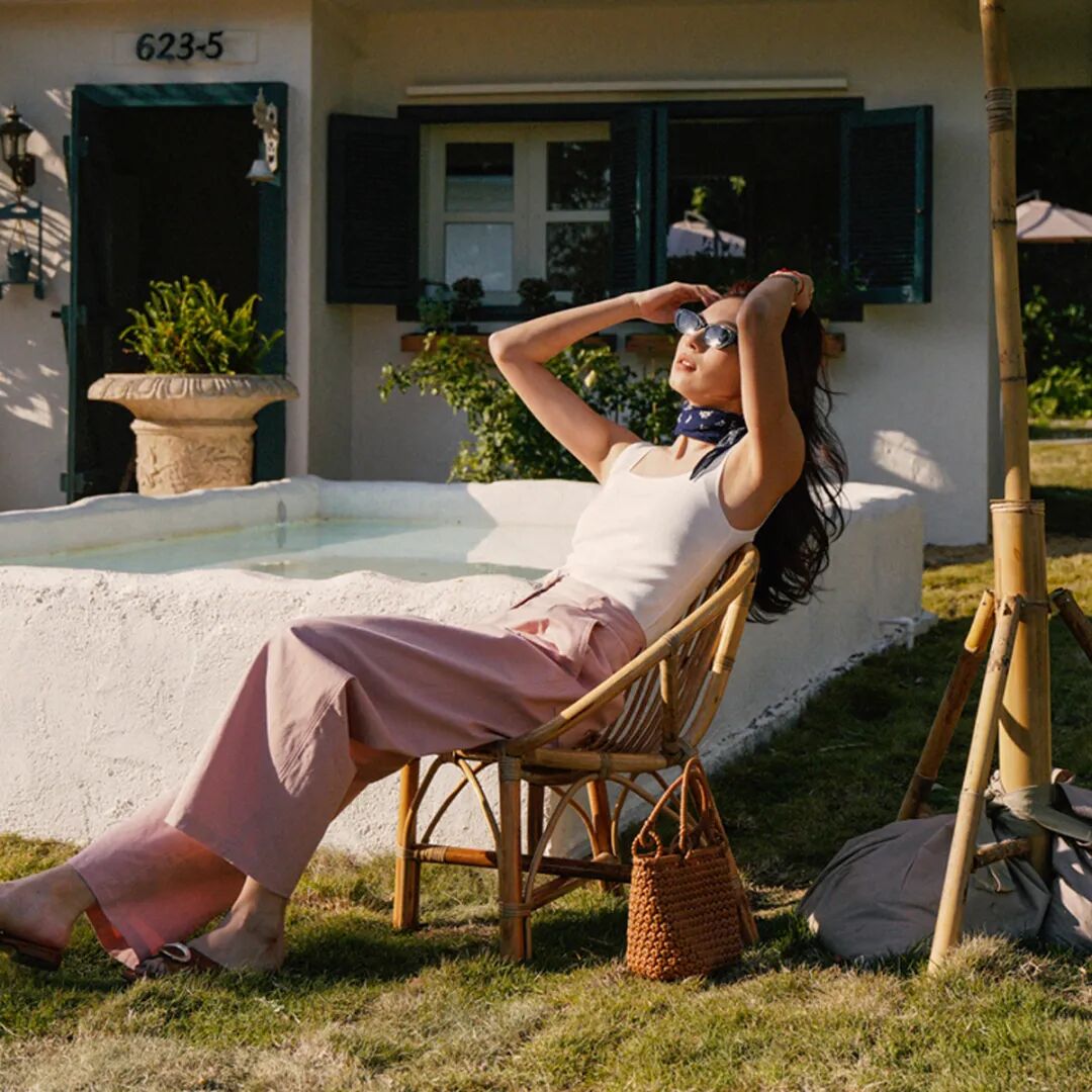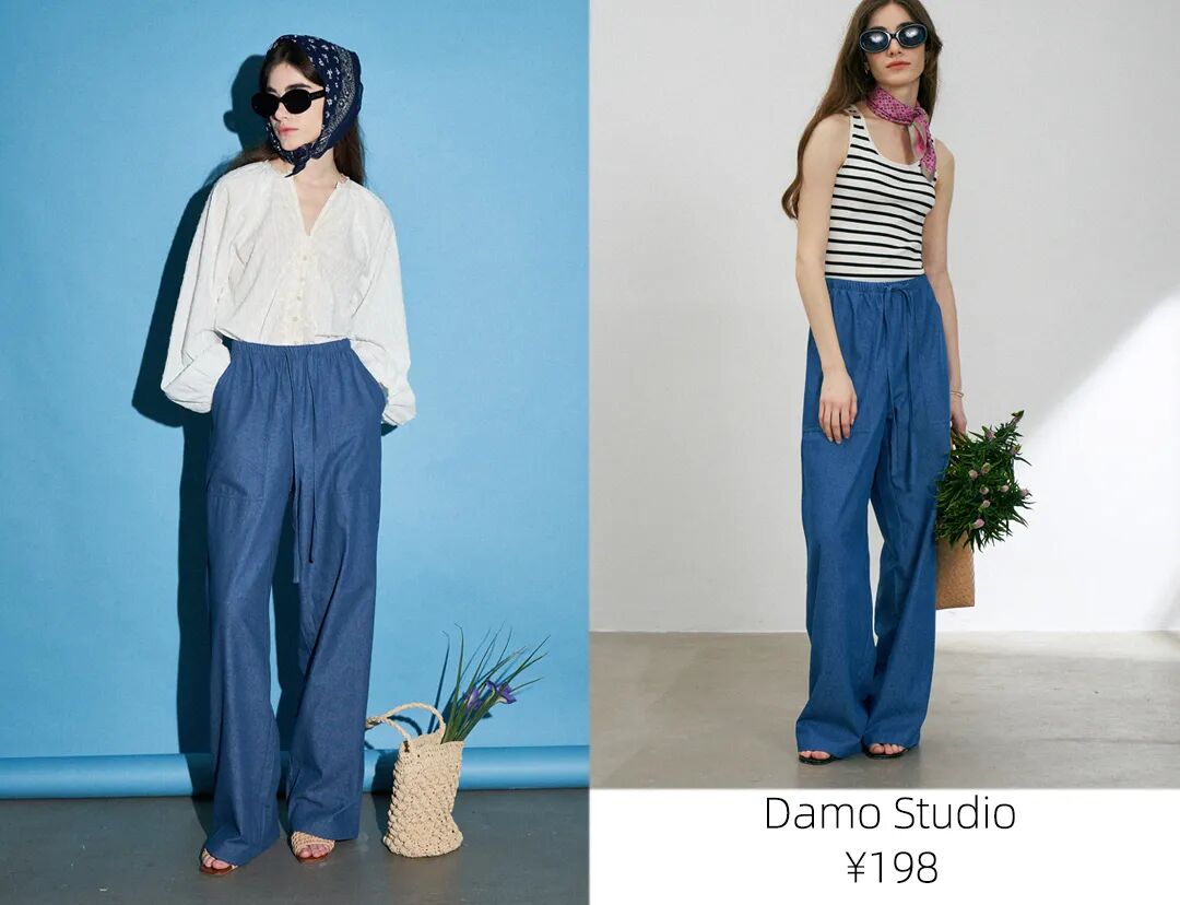 法式風格不能少的,就是一條版型好看的牛仔褲了。鬆緊抽繩的闊腿褲就是假日必備了,特別適合去度假的時候穿,配雙時髦的人字拖,絕了。