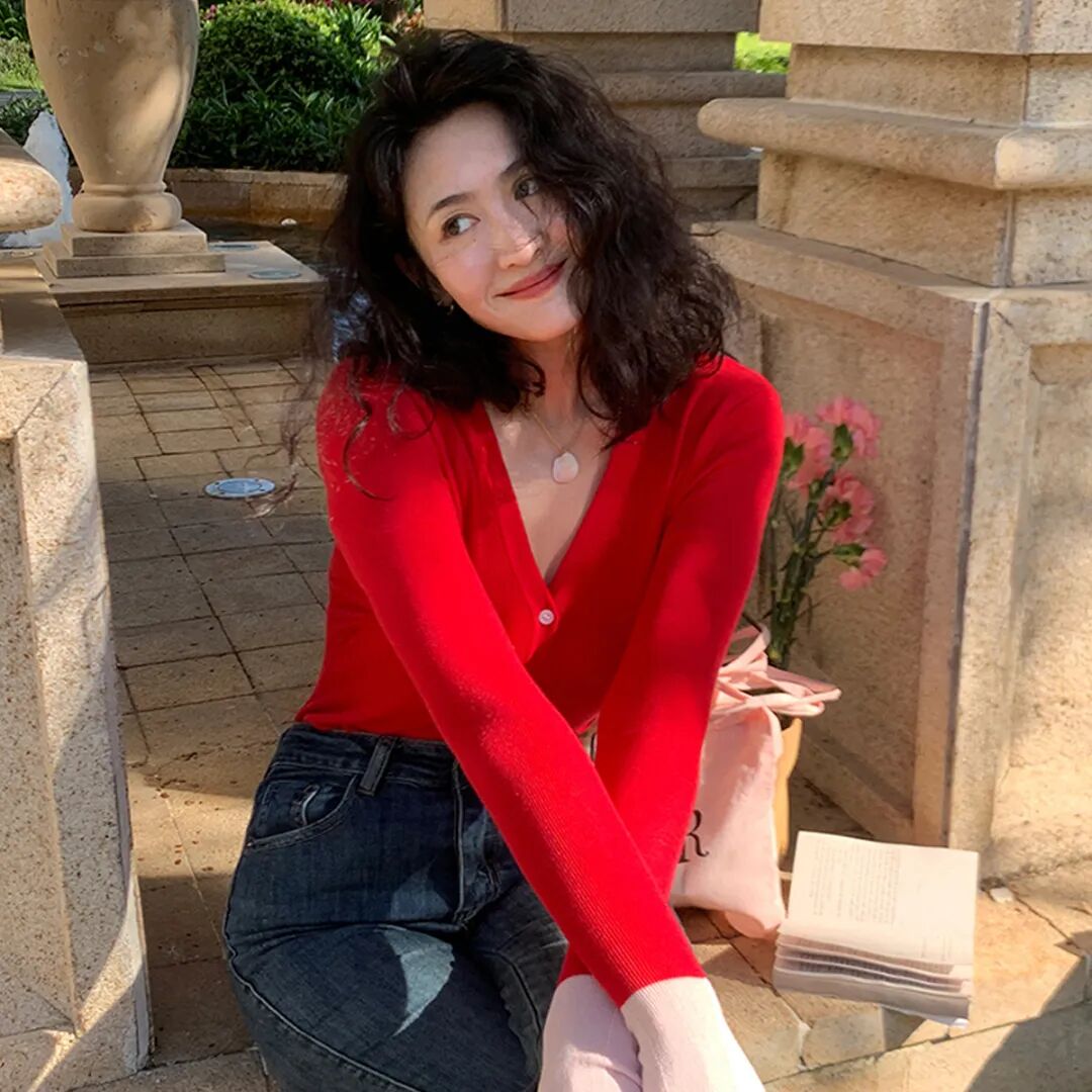 說到法式,我第一想到的顏色就是紅色,她們真的把它演繹的相當時髦。我看了下,這種修身大領口的容錯率更高,比較好駕馭。