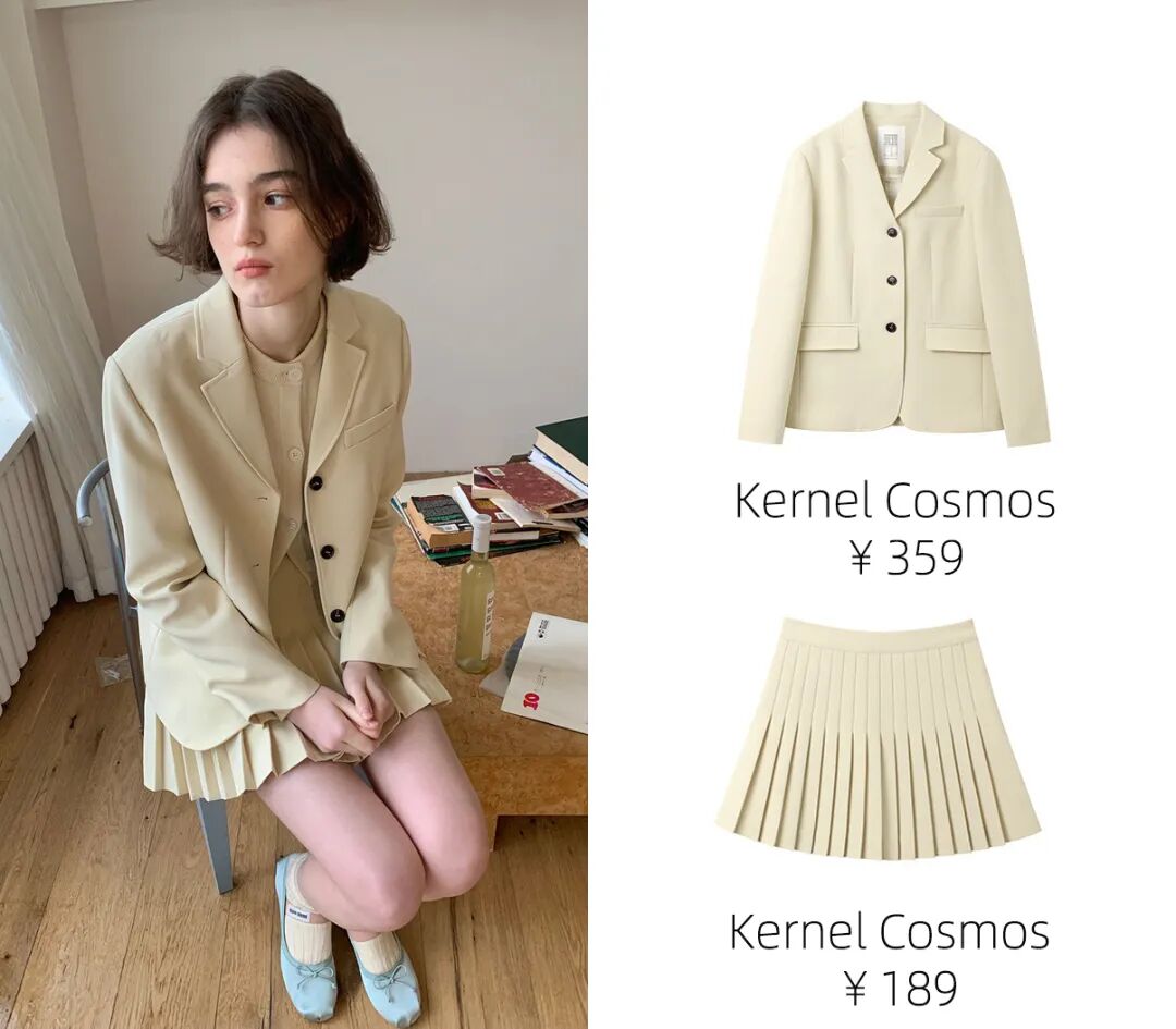 這套是出了一個set,除了西裝還有百褶裙,搭配芭蕾風鞋子,有種miumiu的感覺。