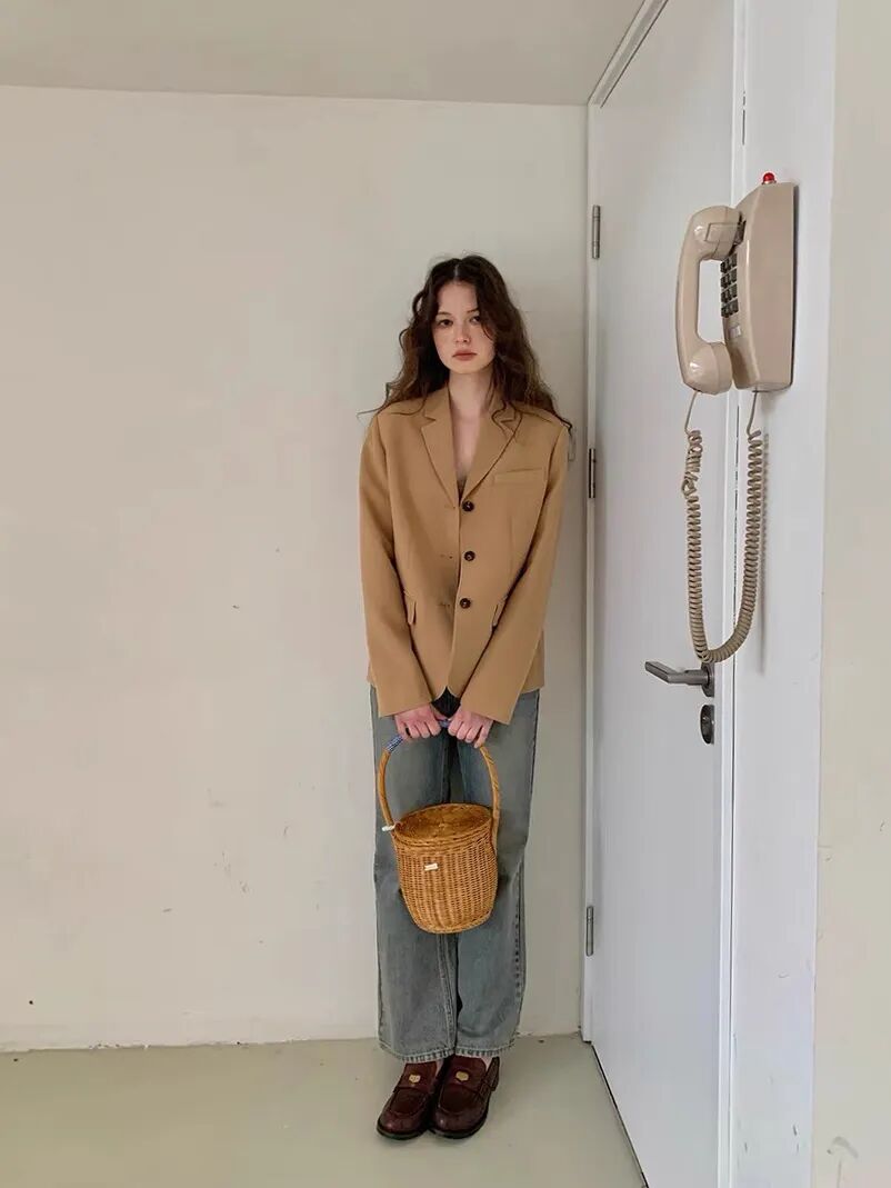 他家這套穿搭也好看!很適合通勤,頭髮捲一捲更有法式浪漫的感覺。