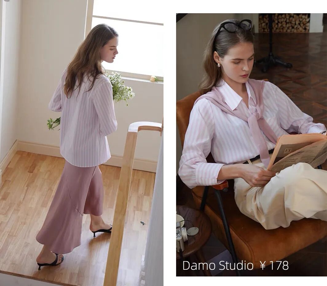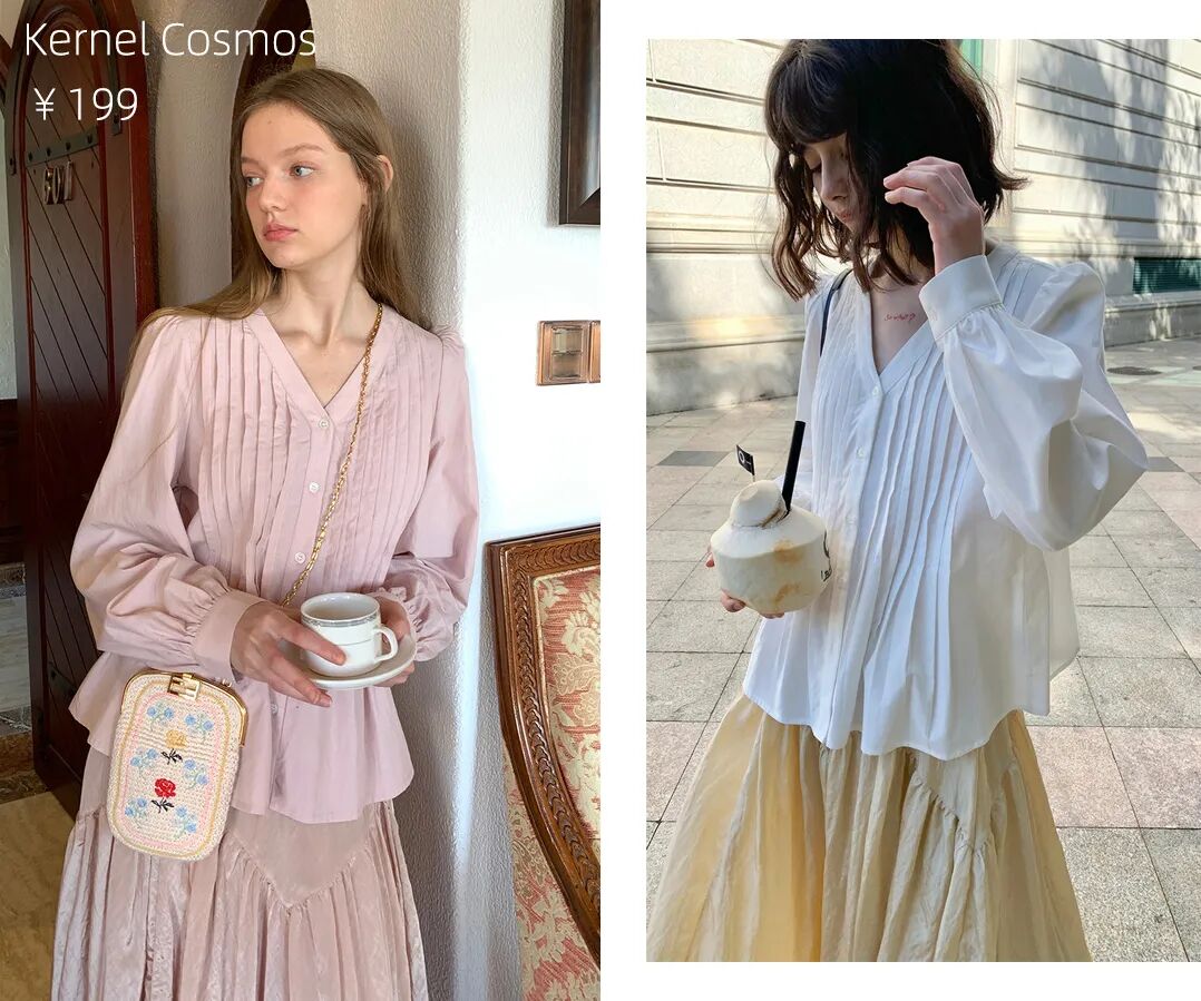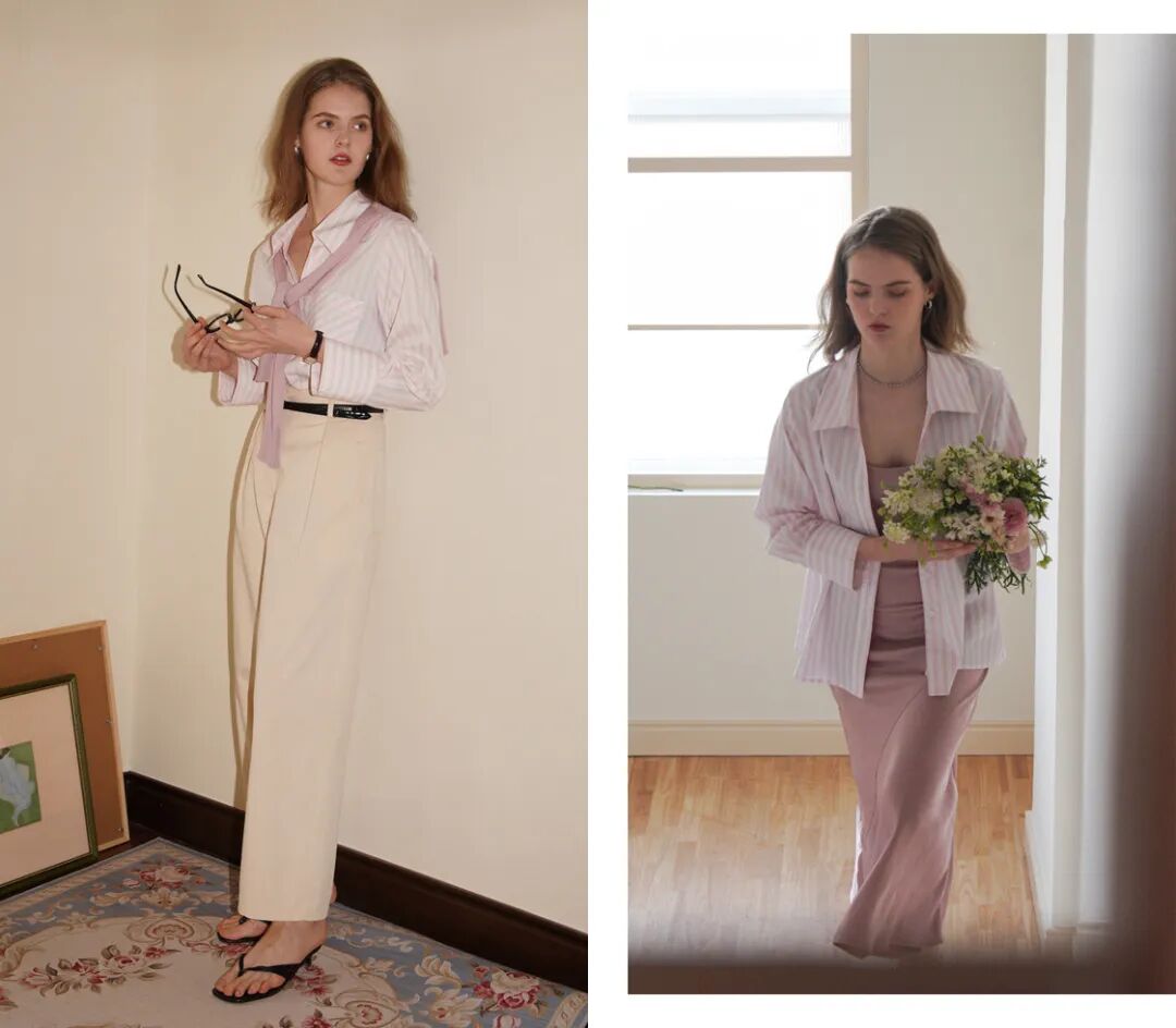 法式風怎麼少得了浪漫襯衫,這件V領很好搭,很喜歡這個溫柔淺粉~