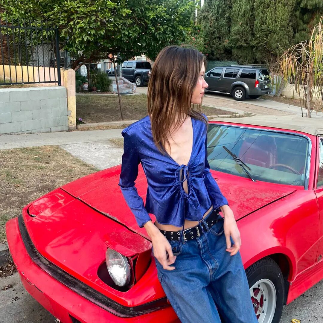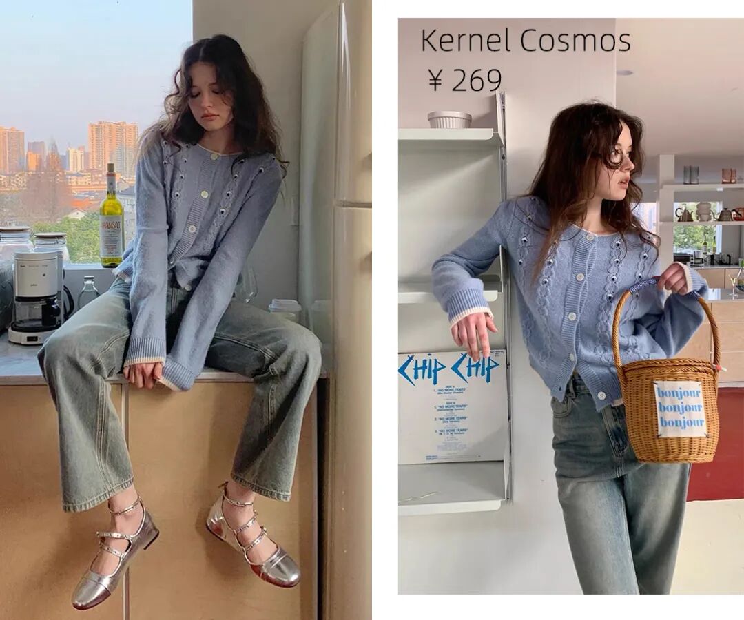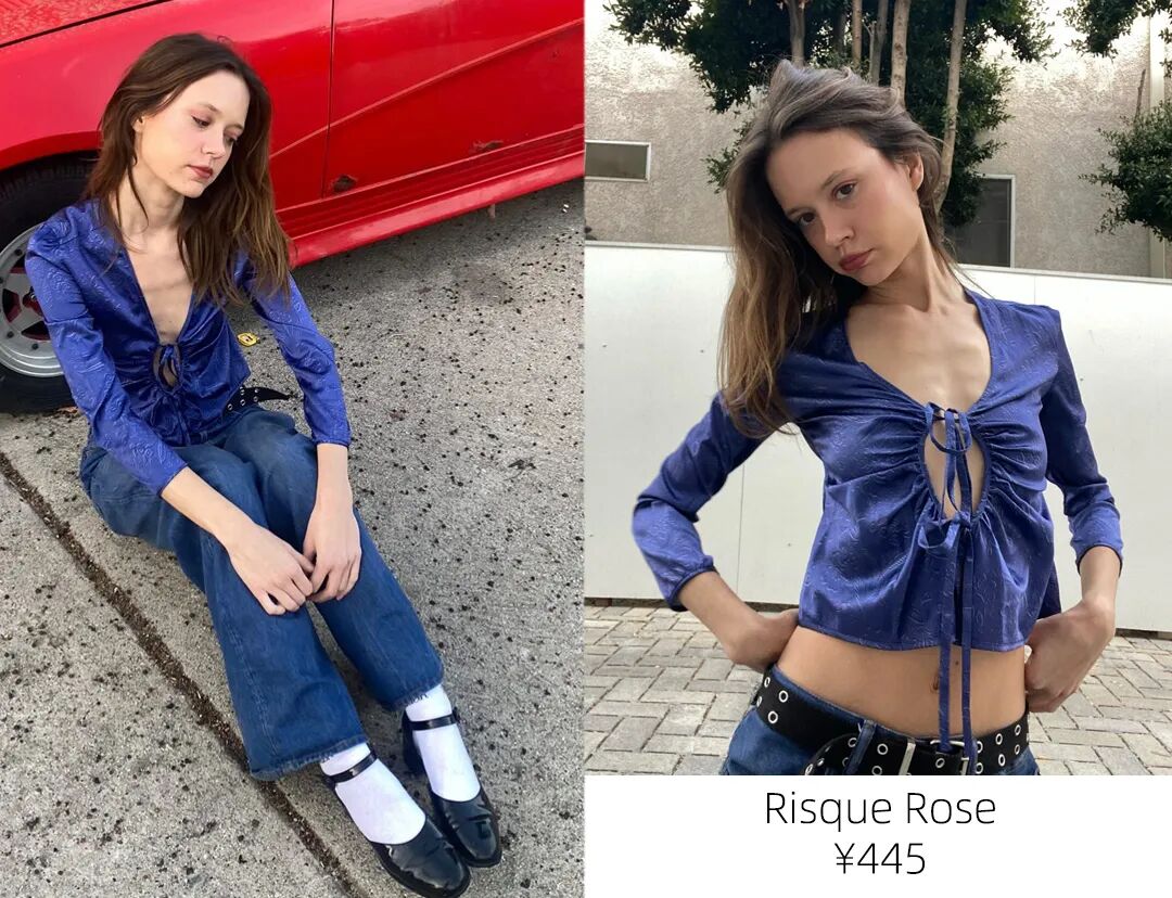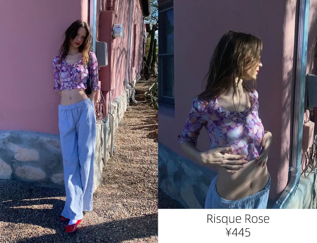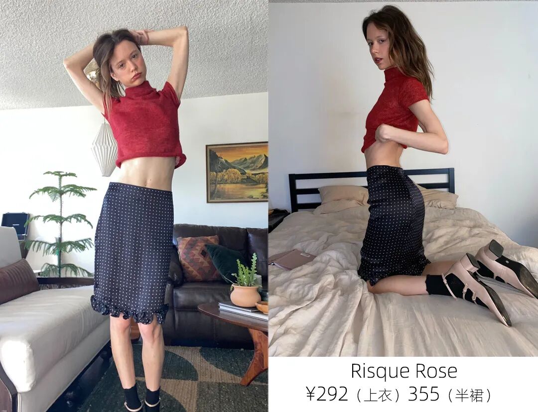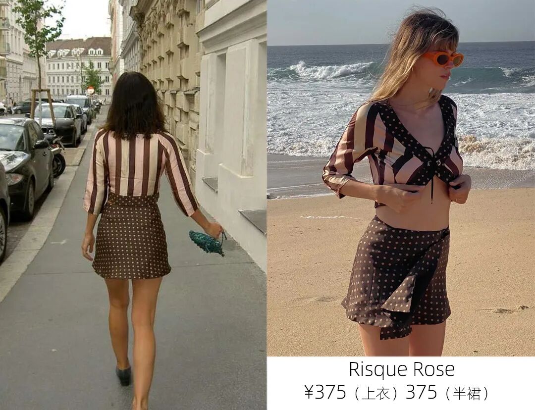 Risque Rose就是專門做真絲單品的,特別有那種性感慵懶的氛圍,很適合穿去和好友微醺。小上衣是馬海毛的,波點半裙則是真絲,一套買不愁搭配。