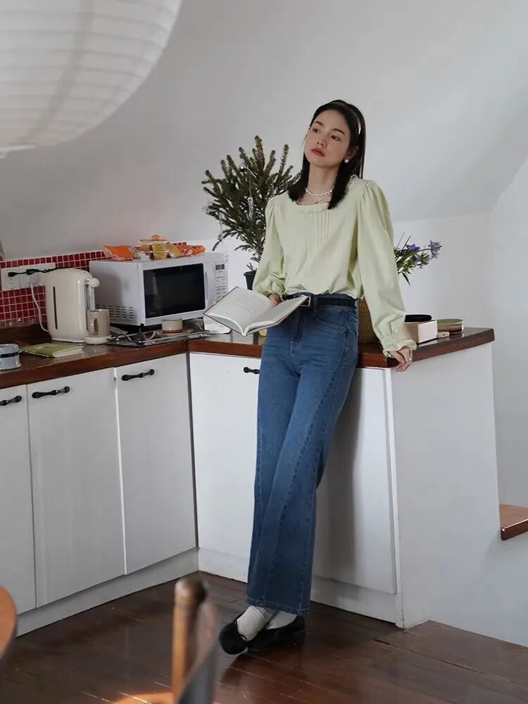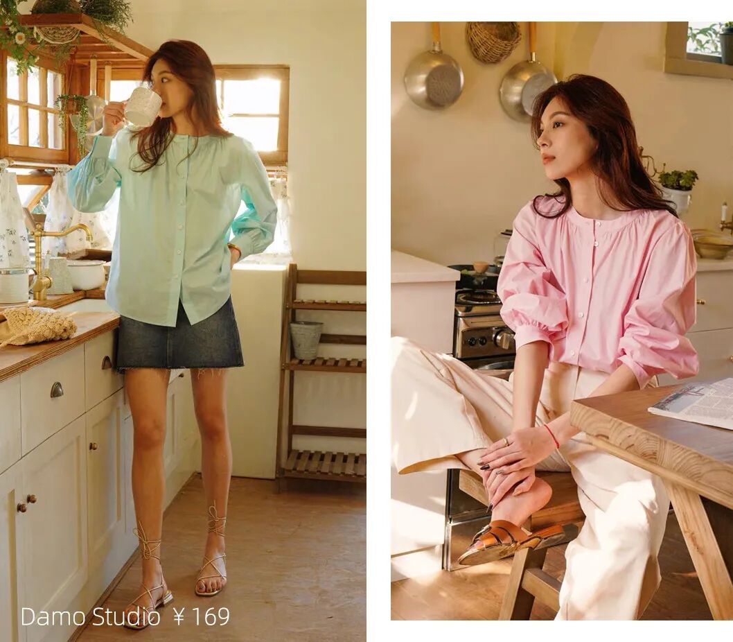袖子也設計成了小小的泡泡袖,不會過於誇張,把整件襯衫風格展現的恰到好處,即使通勤也能很顯品味。
