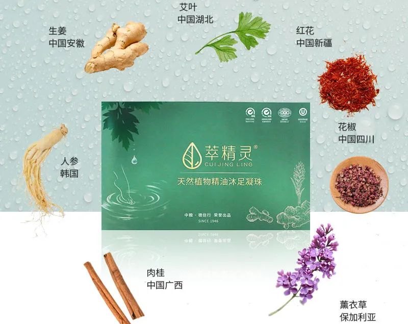 上面也說到,每顆“綠丸子”都蘊含了7味珍貴的植物萃取精華,有艾葉、姜根、紅花、薰衣草、人參、肉桂、花椒。