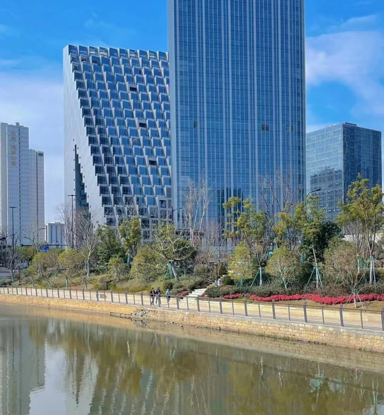在錢江南岸的錢江世紀城,高度超200米,外形看上去和英國倫敦的“小黃瓜”大廈很像的浙江交通集團金融中心總部大樓正在建設,未來也將成為杭州的一處建築地標。