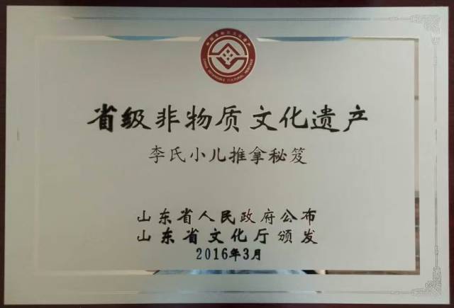 如今李氏小兒推拿有百年曆史,2016年入選山東省省級非物質文化遺產代表性名錄。
