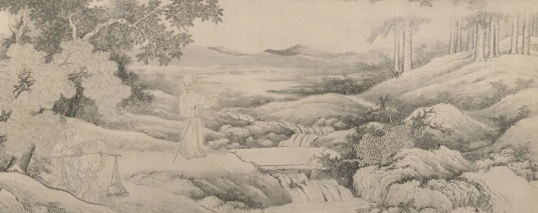 禹之鼎《翁嵩年負土圖》卷,紙本淡設色,41.8×128.8cm,清,藏於故宮博物院,高士奇題跋
