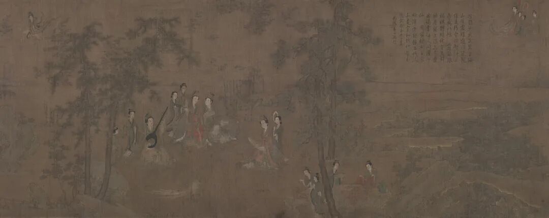 阮郜《閬苑女仙圖》卷,絹本設色,42.7×177.2cm,五代,藏於故宮博物院,經高士奇遞藏