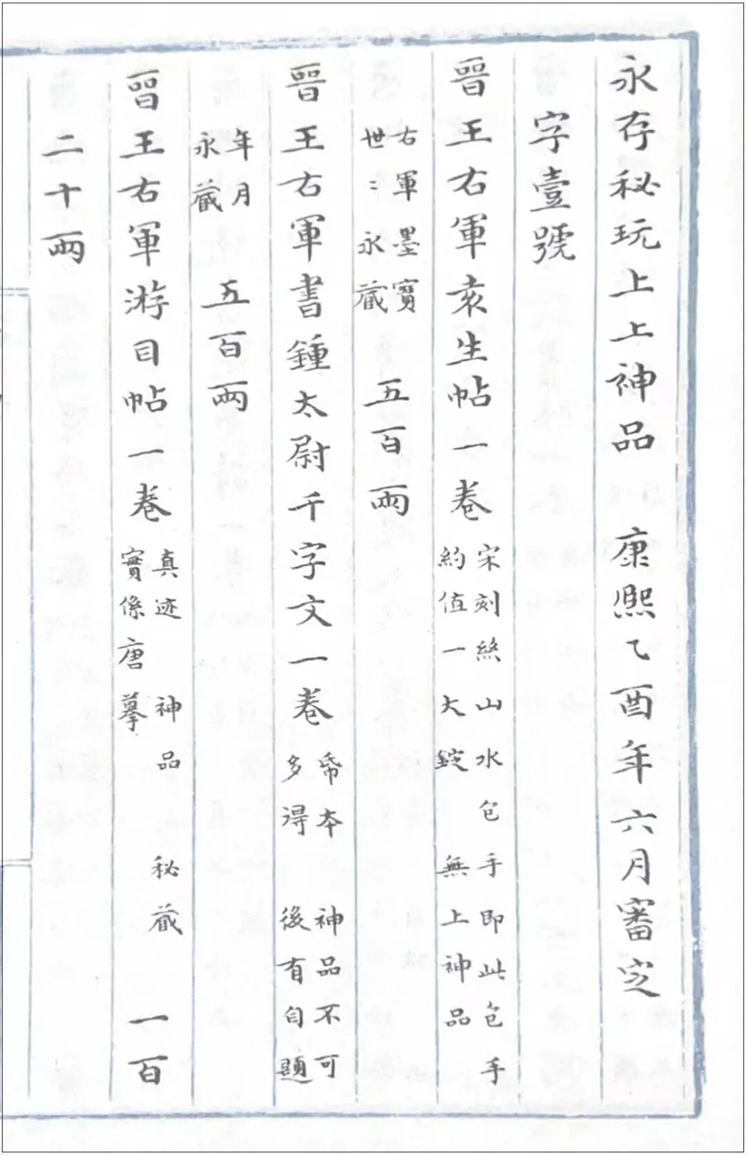 這本秘賬一經刊佈便引起軒然大波——其中,“類目”內分為“進字壹號”“進字貳號”“送字號”“無跋收藏手卷”“永存秘玩上上神品”等九類;“註釋”則寫明瞭藏品的真偽與品相。而“進字號”記錄的作品中,不少被註釋為“贗”,用於進貢給大清皇宮……