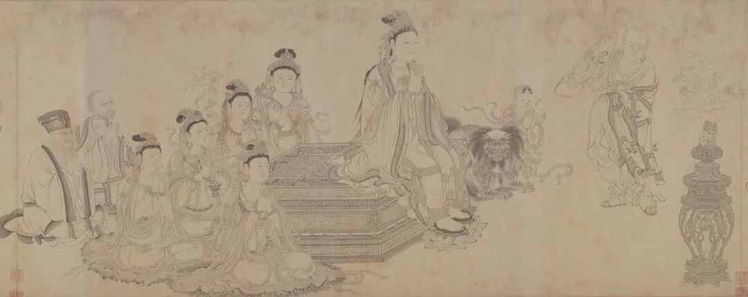 傳李公麟《維摩演教圖》卷,紙本墨筆,34.6×207.5cm,北宋,藏於故宮博物院,為《江村銷夏圖》收錄