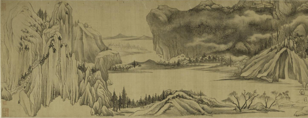 董其昌《煙江疊嶂圖》(局部),紙本設色,29.5×184.5cm,明,藏於上海博物館,經高士奇遞藏,後轉贈宋犖