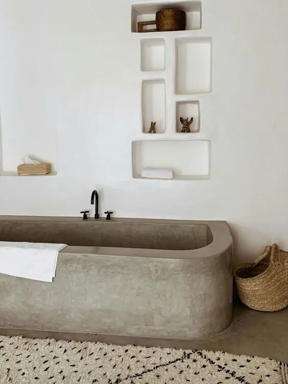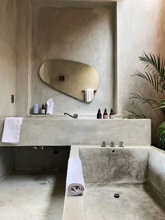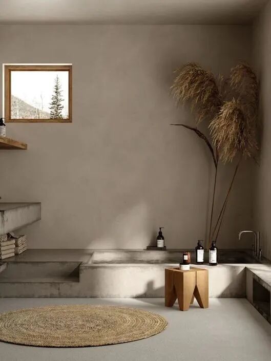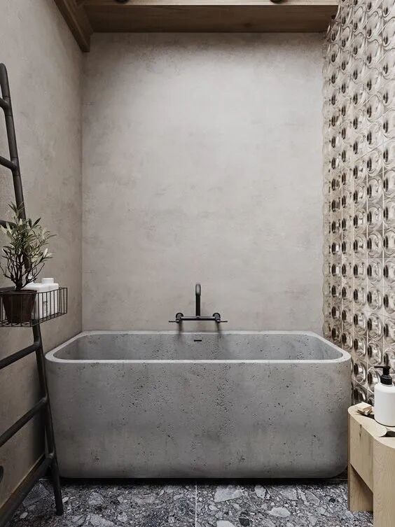 經過處理後,水泥可適用於牆面、地面等大面積塗刷,也可用作家居用品的選材使用,譬如浴室檯面或浴缸表層等,充足利用空間面積,同時水泥具備防水、防黴的特點,一體化打造沒有衛生死角,後期清潔打理都會方便很多。