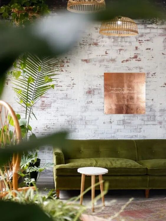 不過磚牆建議選擇一面為好,利用色系相近的磚塊拼接,錯落打造出立體層次。可以與木質桌椅、書籍搭配,打造溫馨舒緩的風格;也可與現代風的不鏽鋼、皮質元素搭配,清新利落;亦可與復古的絲絨沙發、植物搭配,帶來更有活力的空間氛圍。