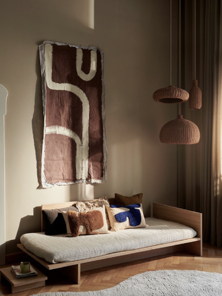將草、竹等不同材料以編織重新展現出鮮活的生命力,這便是編織的魅力,是獨特的生活情懷,也是對美好生活的祈願。草編取之於自然,用之於自然,是一種質樸的浪漫~無論是燈具、物件、靠包還是地毯…都可與編織元素組合,柔韌的美呈現於產品之中,裝飾性夠強。