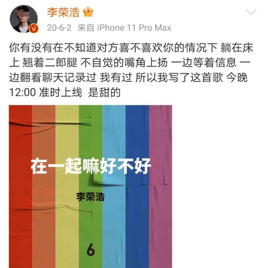 《在一起嘛好不好》發行這首歌的時候,李榮浩特意說了他的靈感來源。