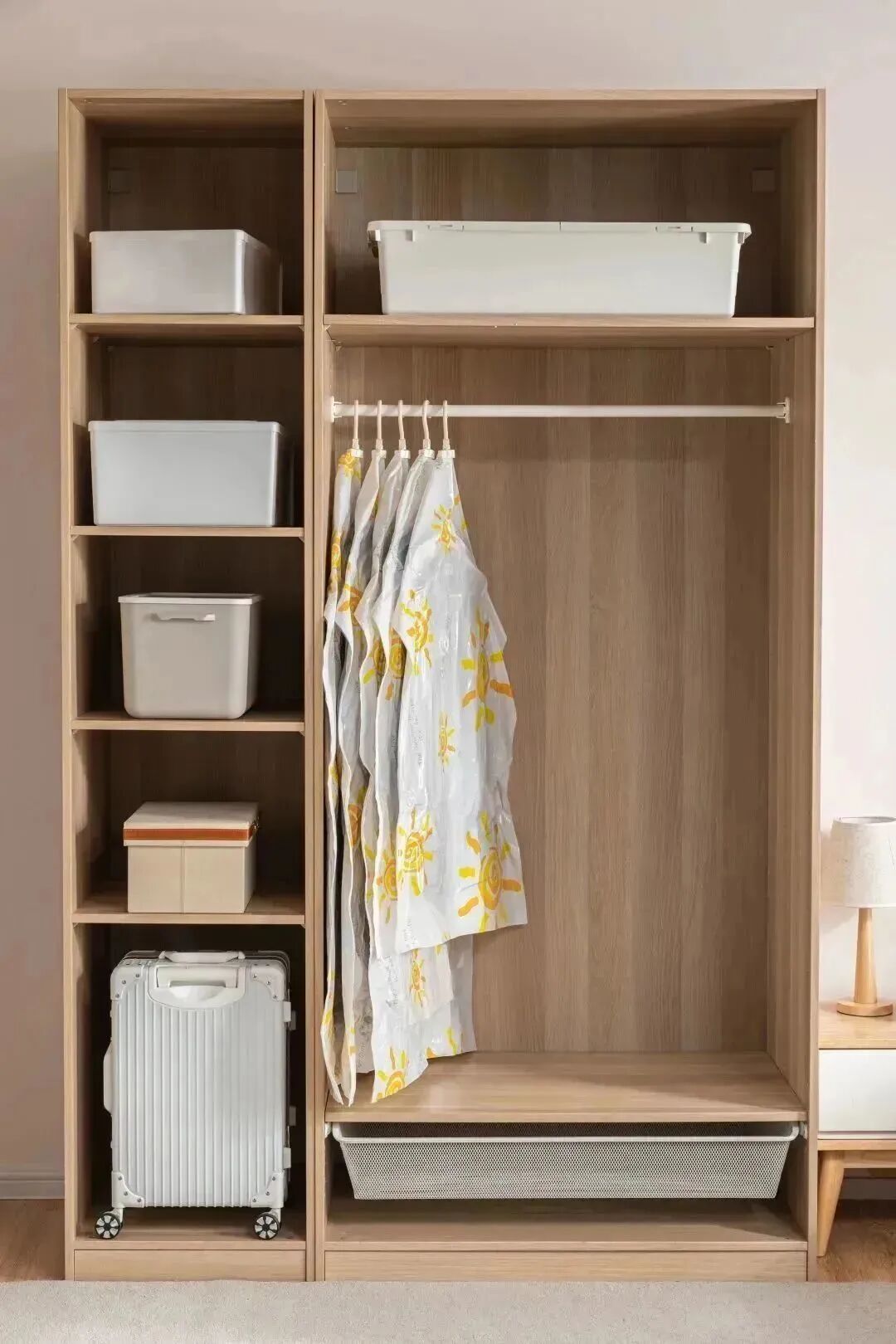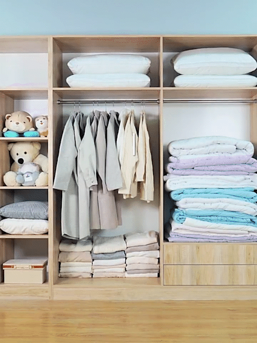 把換季不用的衣服收納起來,衣櫃瞬間省下一半的空間,看上去幹淨又整潔!