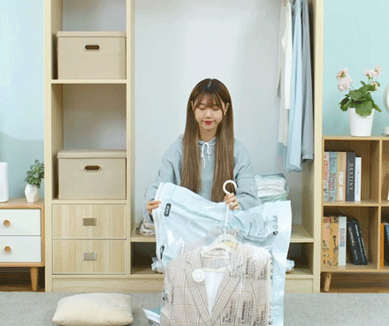如此一來,用壓縮袋收納衣服就輕鬆很多,無需四處找工具,徒手就能把多餘空氣擠出來,特別方便!