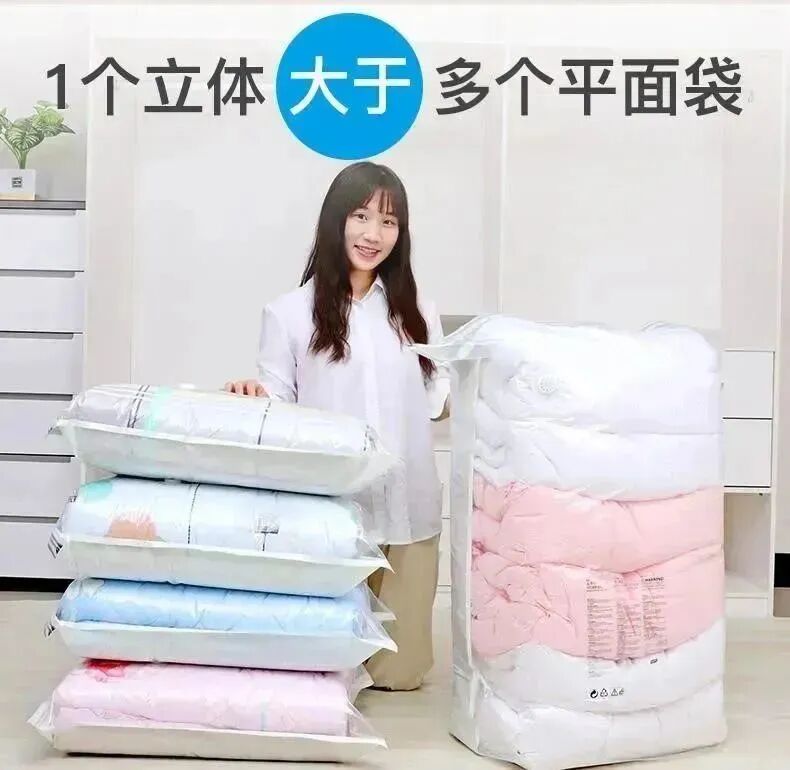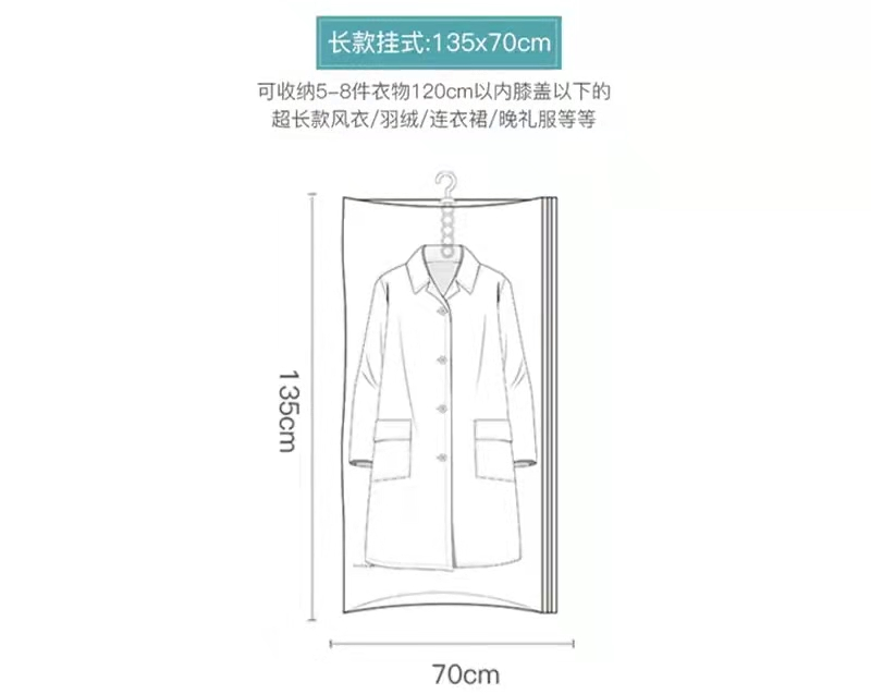 可一袋裝一件,也可一袋收納多件,超大容量可以同時收納5件羽絨服!