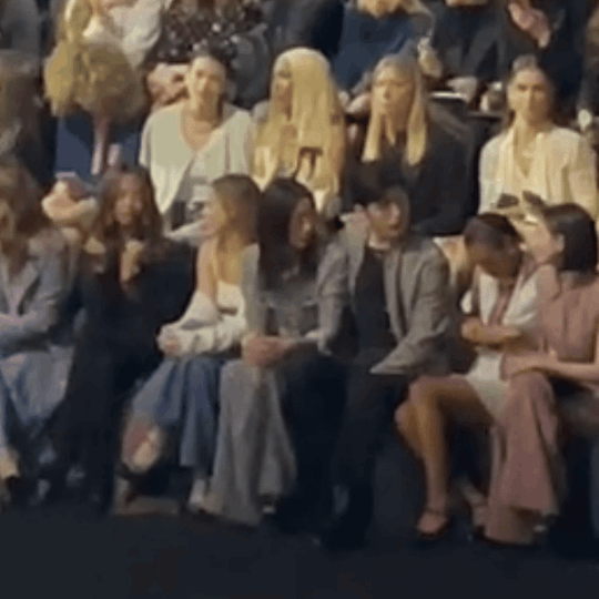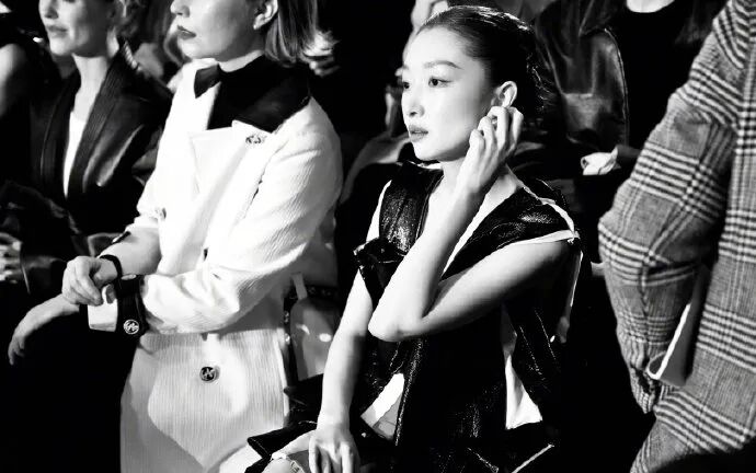 看秀時被抓拍,黑白色調有種電影截圖既視感,舉手投足盡顯影后風範。
