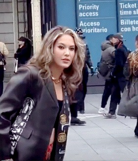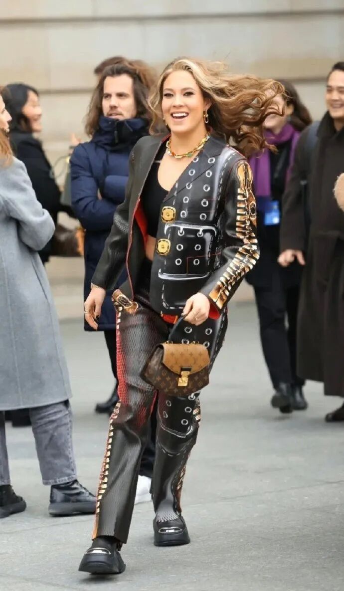 愛凌在秀場外被拍到時,走路超快,風一樣的女子~
