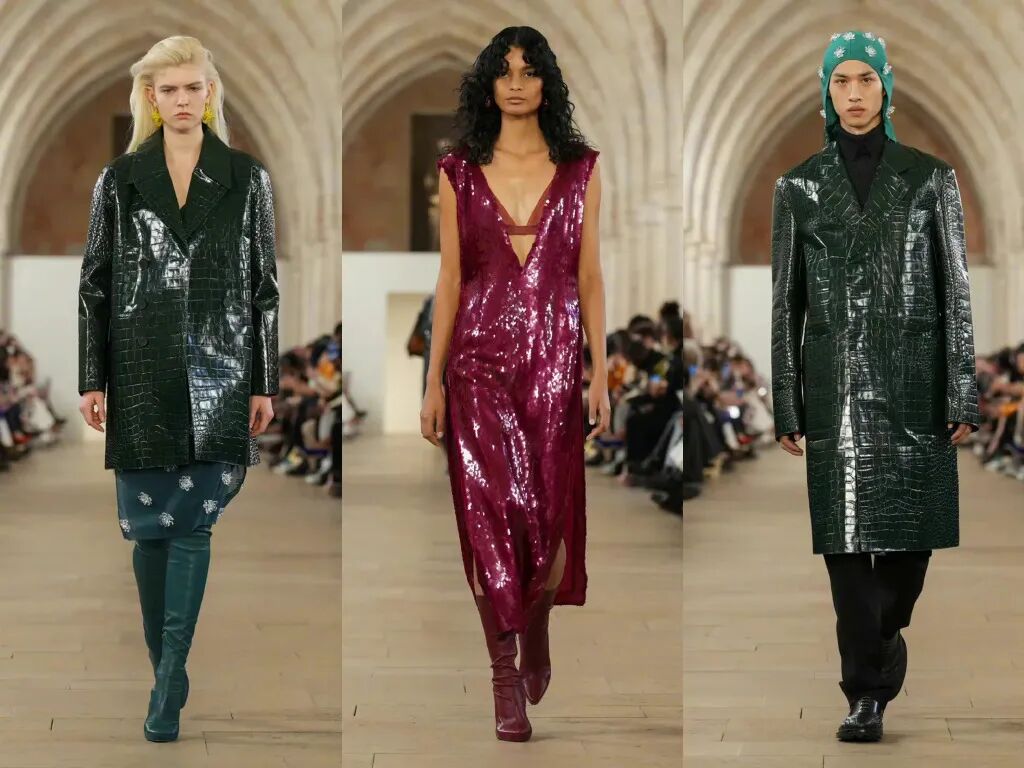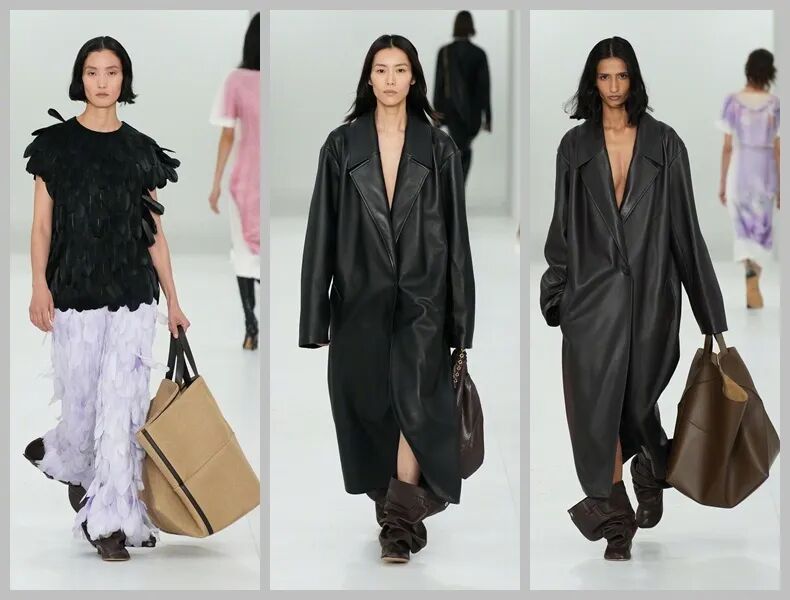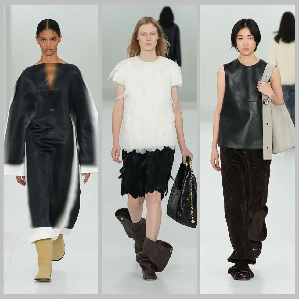 LANVIN 2023秋冬系列從黑色開始,逐漸過渡到墨綠,玫紅以及輕柔的粉紅色系,用皮革融入到設計當中,整個系列極簡摩登,又不乏復古風格。
