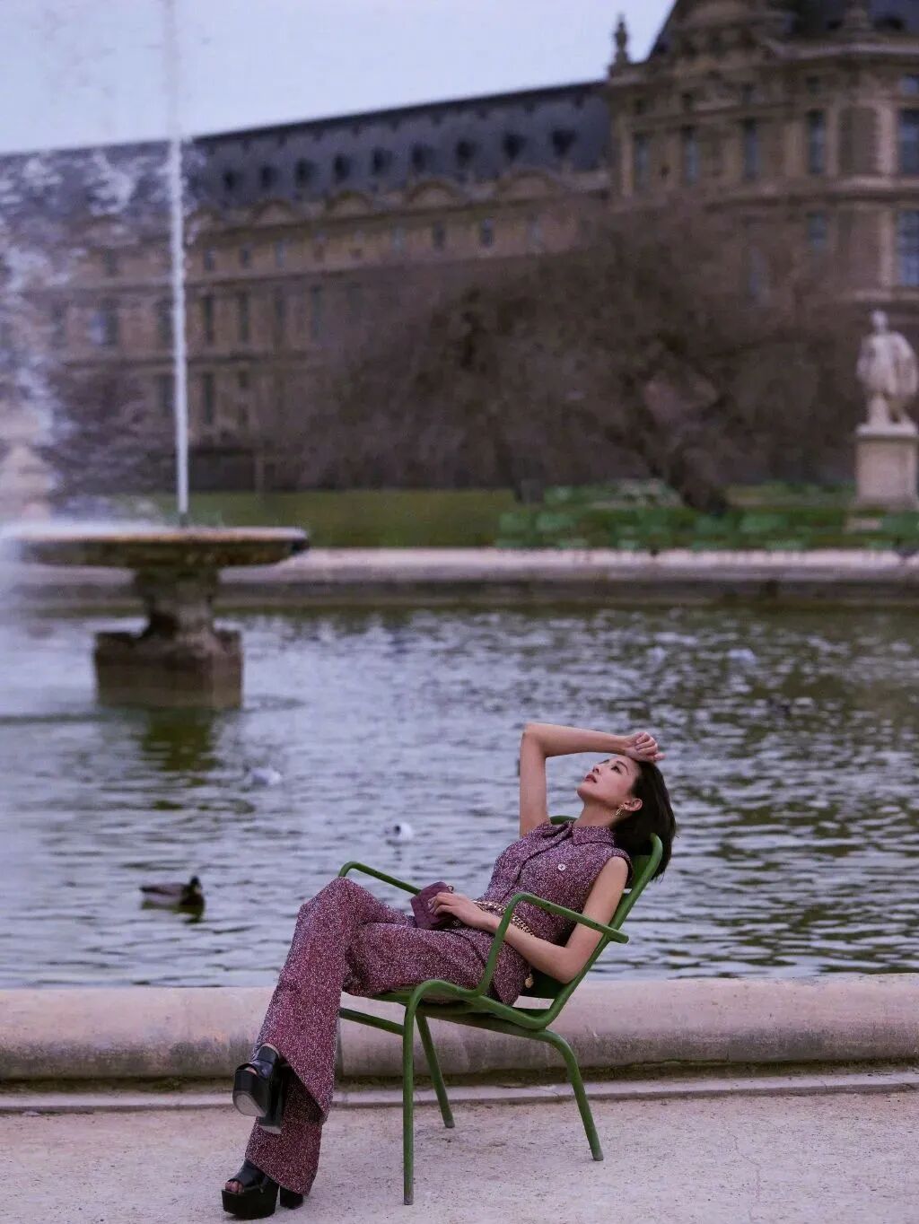 張鈞甯巴黎看秀,小香風套裝優雅知性,腿長兩米八~