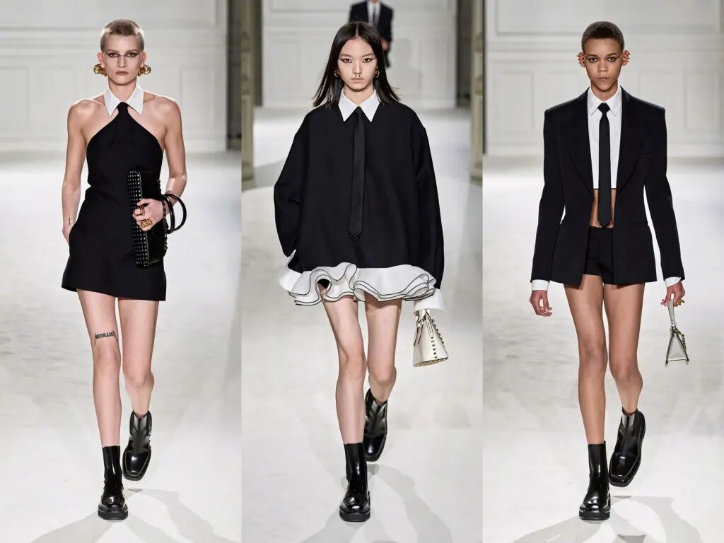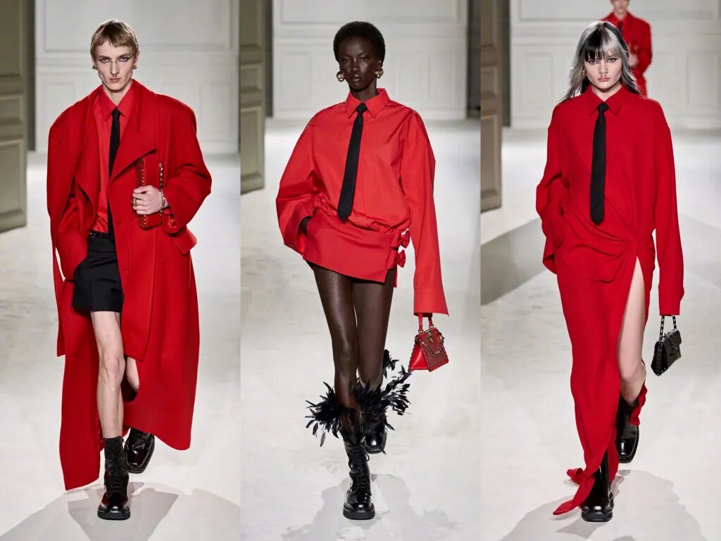 Valentino 2023秋冬系列以“Black Tie”為主題,經典的黑色領帶貫穿這個系列,各種剪裁流暢的西裝、襯衫,搭配羽毛裝飾、亮片鉚釘、鏤空細節等,加上黑色,紅色和粉色的配色,兼具酷颯和柔美!