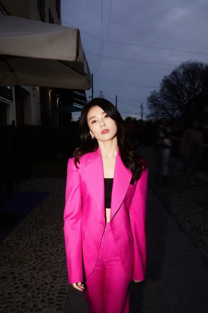 芭比粉和她本人好搭,透著一股瀟灑勁,走在街上化身為最亮眼的光。