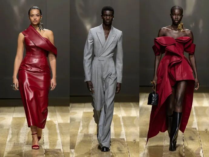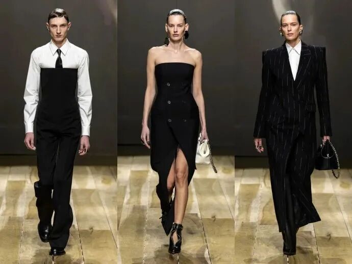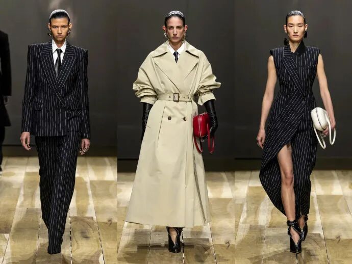 Alexander McQueen 2023秋冬系列由蘭花元素貫穿始終,利落西服套裝、鏤空剪裁細節、重工水晶刺繡等,打造本季剛柔並濟,極具戲劇風格。