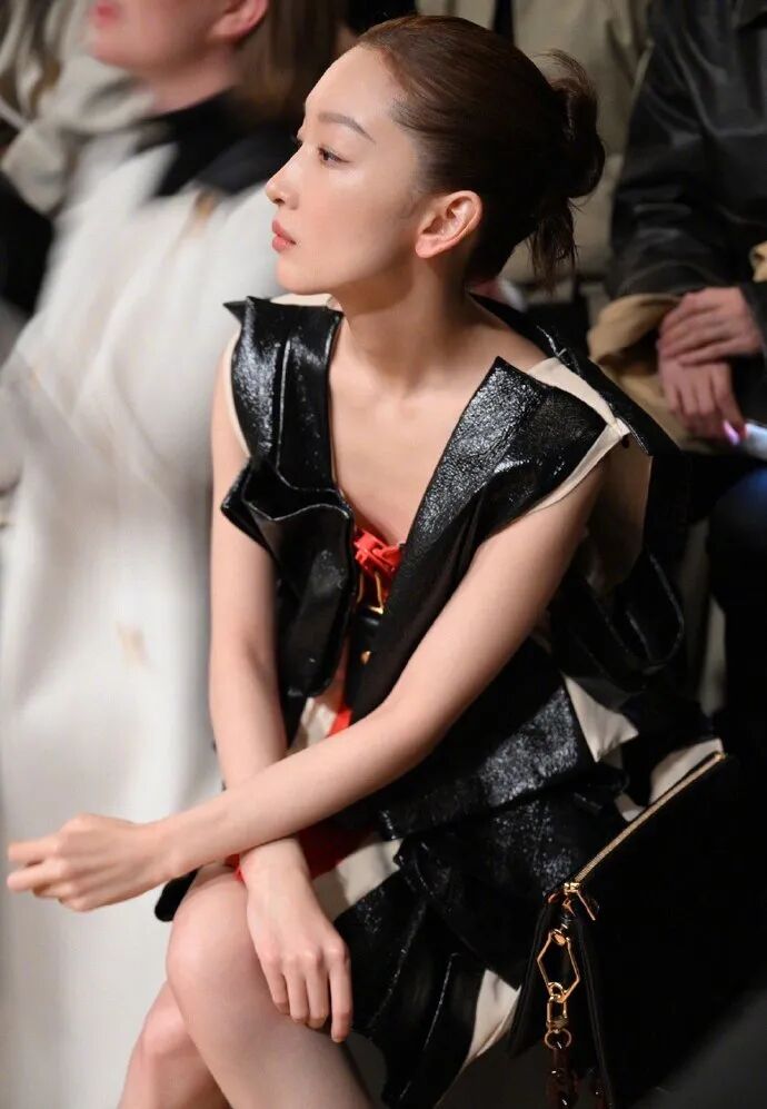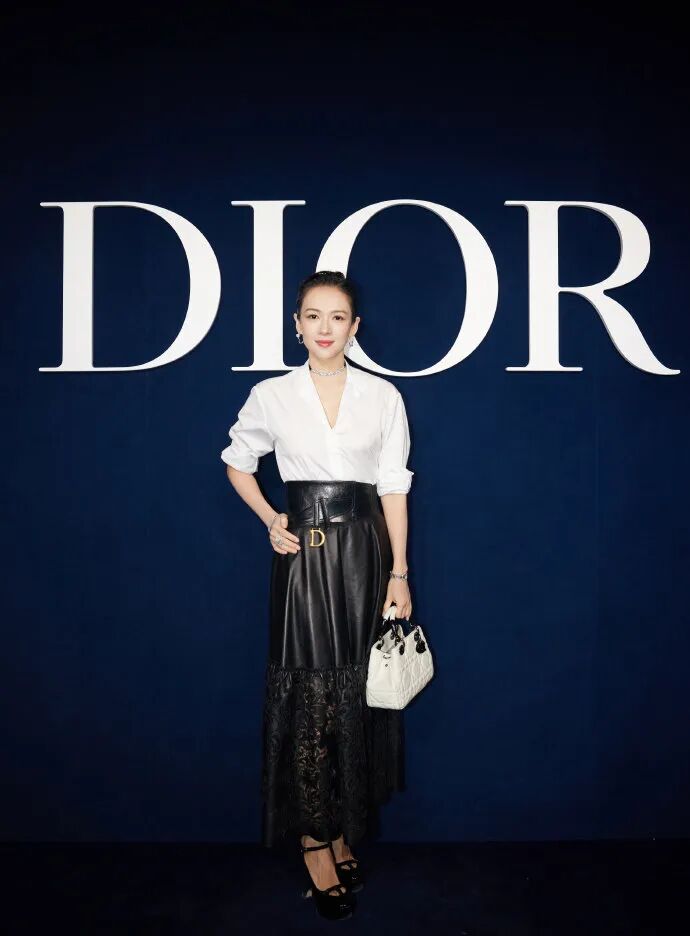 章子怡亮相巴黎時裝週Dior 2023秋冬系列大秀,一身白襯衫配黑皮傘裙,優雅大氣!
