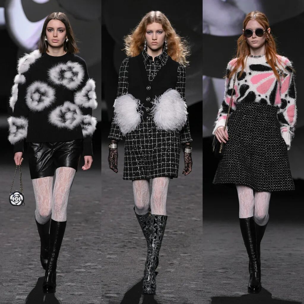 Chanel 2023秋冬系列靈感源於品牌經典的風格符號——山茶花,從經典的黑白色系過渡到粉色,酒紅點綴,在瀟灑隨性的時尚姿態中,增加了一抹女性的浪漫和柔美。