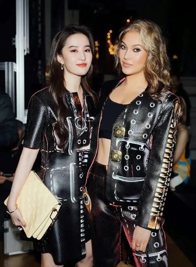 和谷愛凌合照,愛凌身穿同款樣式的皮衣皮褲,氣場超強大,襯得菲姐都變更甜了,兩人美de富有生機又獨具個性。