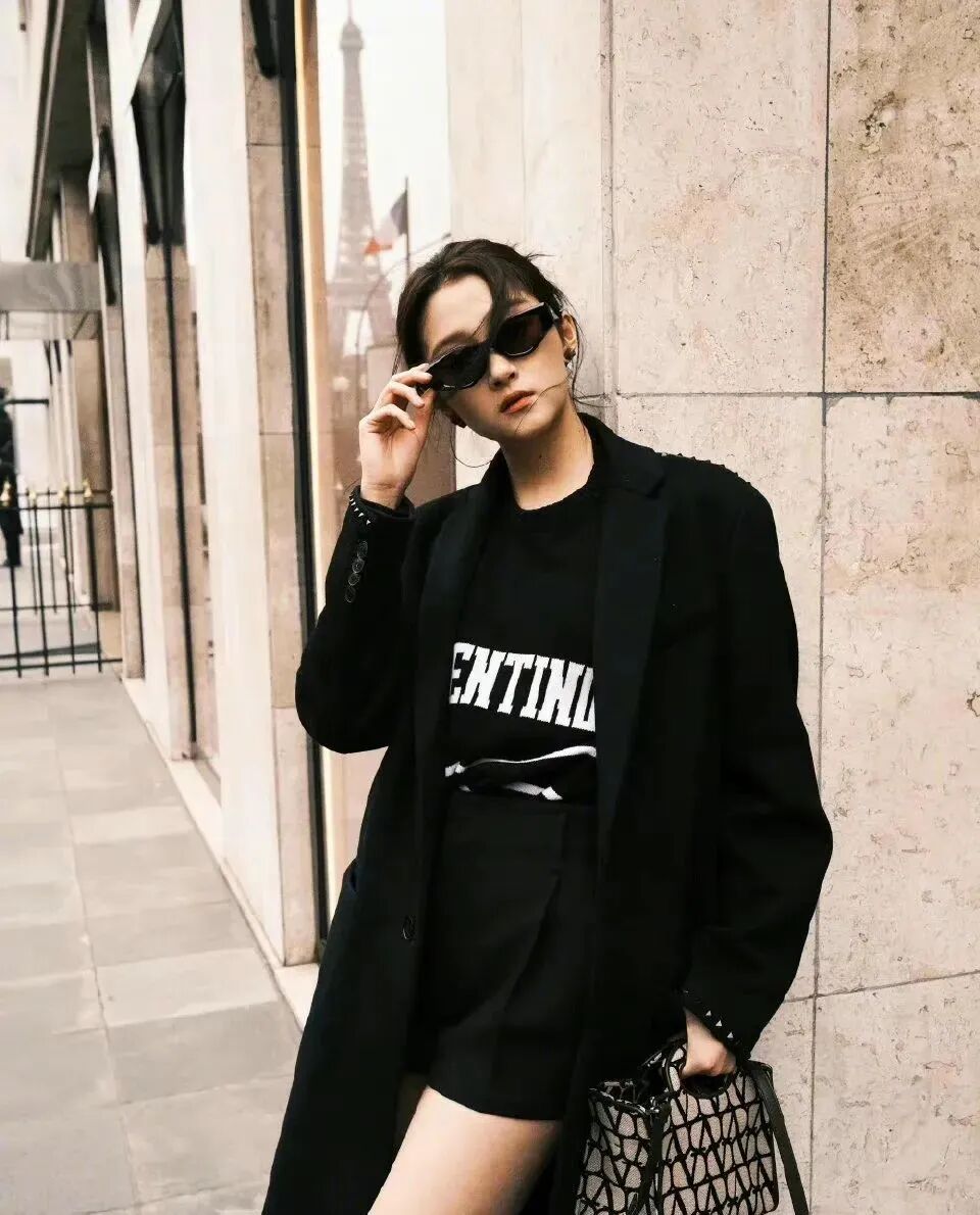 和王楚然一起看秀的還有劉令姿,黑色西服大衣酷颯高級,冷傲貴氣。