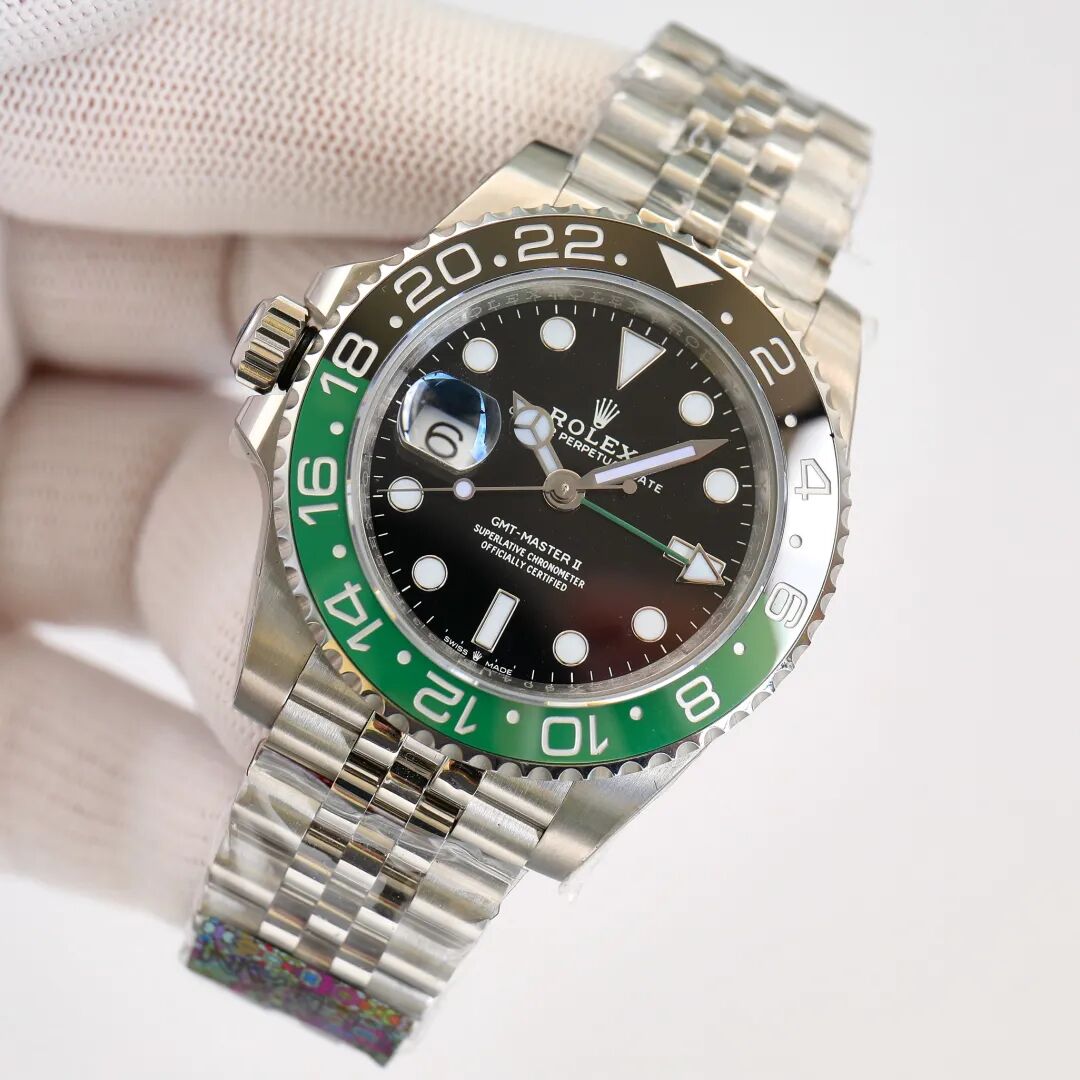 格林尼治型II系列M126720VTNR-0001腕錶如果說讓人感到意外的是哪款表?那一定非這款格林尼治型II莫屬。在新品發佈前有人猜中了綠黑配色的“雪碧圈”,卻怎麼也沒想到它還是個“左撇子”。新款格林尼治型II腕錶採用全新配色,雙色Cerachrom陶質字圈採用黑色與綠色組合設計,並大膽的採用左側上鍊錶冠,突破原了有設計。隨著錶冠的遷移,腕錶的日曆顯示窗口也從3點鐘位置移至9點中位置。新款腕錶在尺寸上沒有做出改變,依舊採用40毫米的耗式錶殼,並且中層錶殼以整塊實心蠔式鋼製成,難以腐蝕的同時保證腕錶防水深度可達100米。在機芯配置上,腕錶使用了新一代32系列機芯(3258),可提供70小時的動力儲存。
