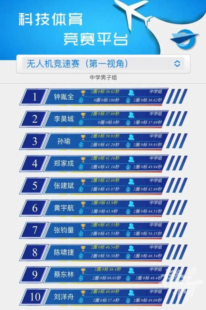 孫瑜、鄭家成表現同樣出色獲得第三、四名。小學組馮蘊乾也收穫了第三名的佳績。每當分院FPV無人機隊員們上場競賽期間,場下觀眾熱情高漲,對於杭州隊員精彩的發揮驚歎不已。