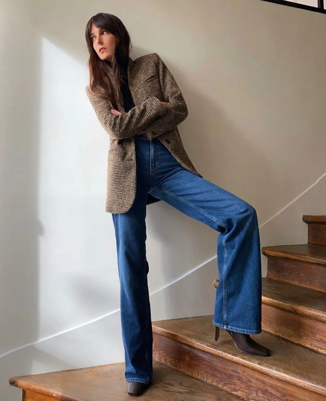 相對修身的牛仔褲是最推薦的,比如小直筒、微喇、錐形牛仔褲等等。